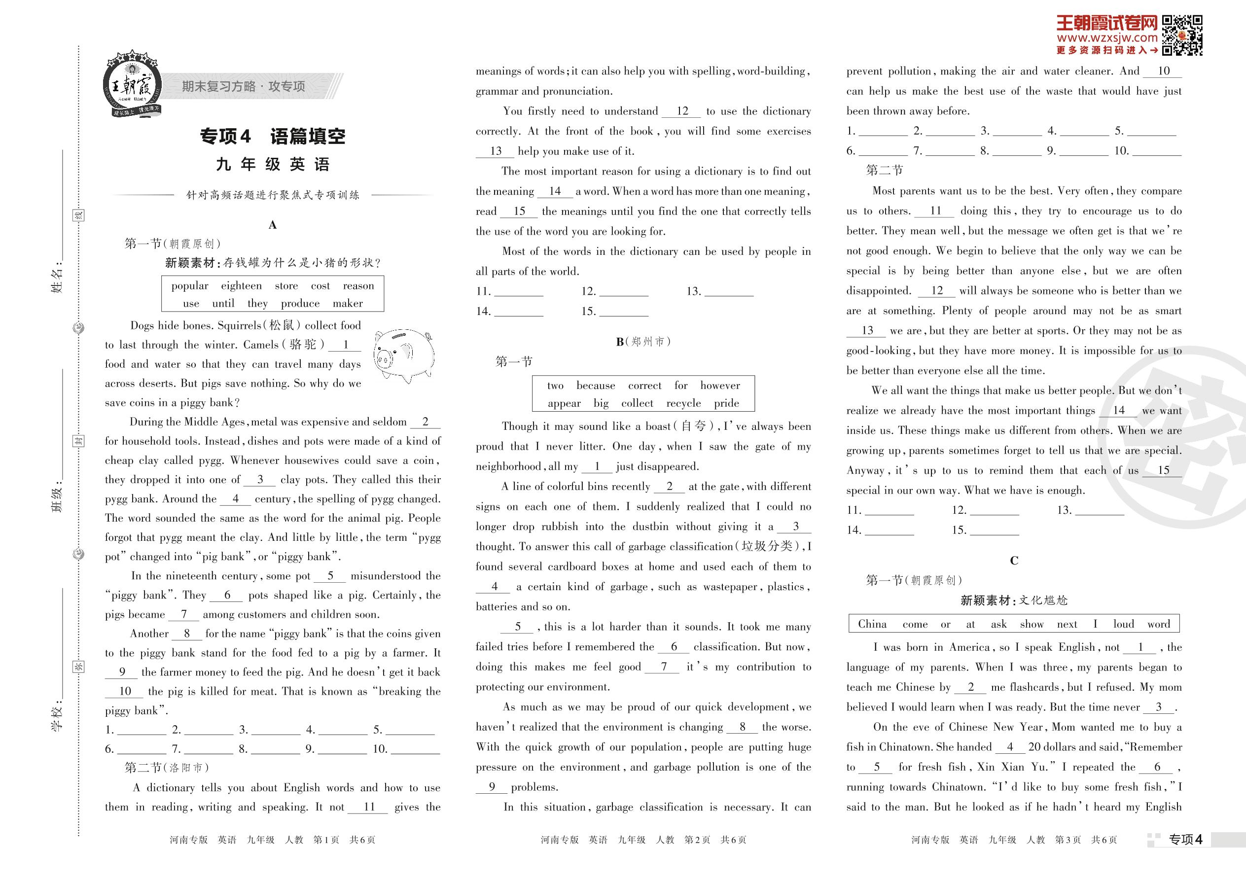 王朝霞期末专项卷——语篇填空九年级上册英语(人教版)【4】