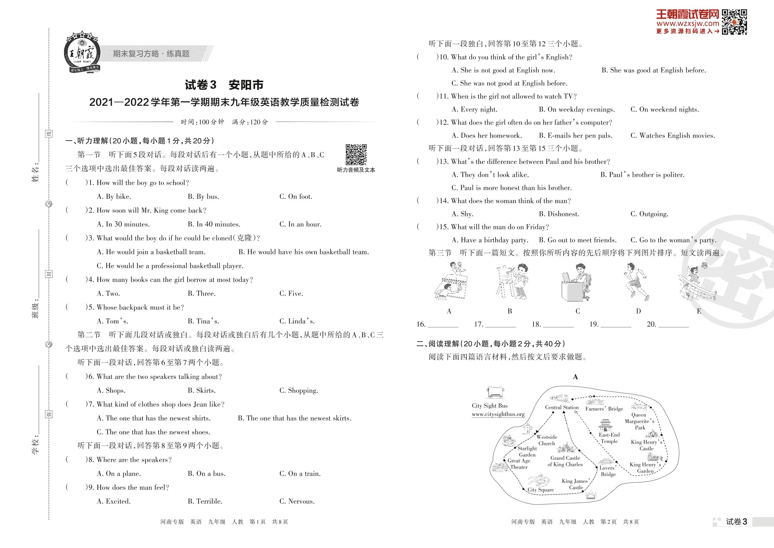 安阳市2021—2022学年第一学期期末九年级英语教学质量检测试卷(人教版)【3】