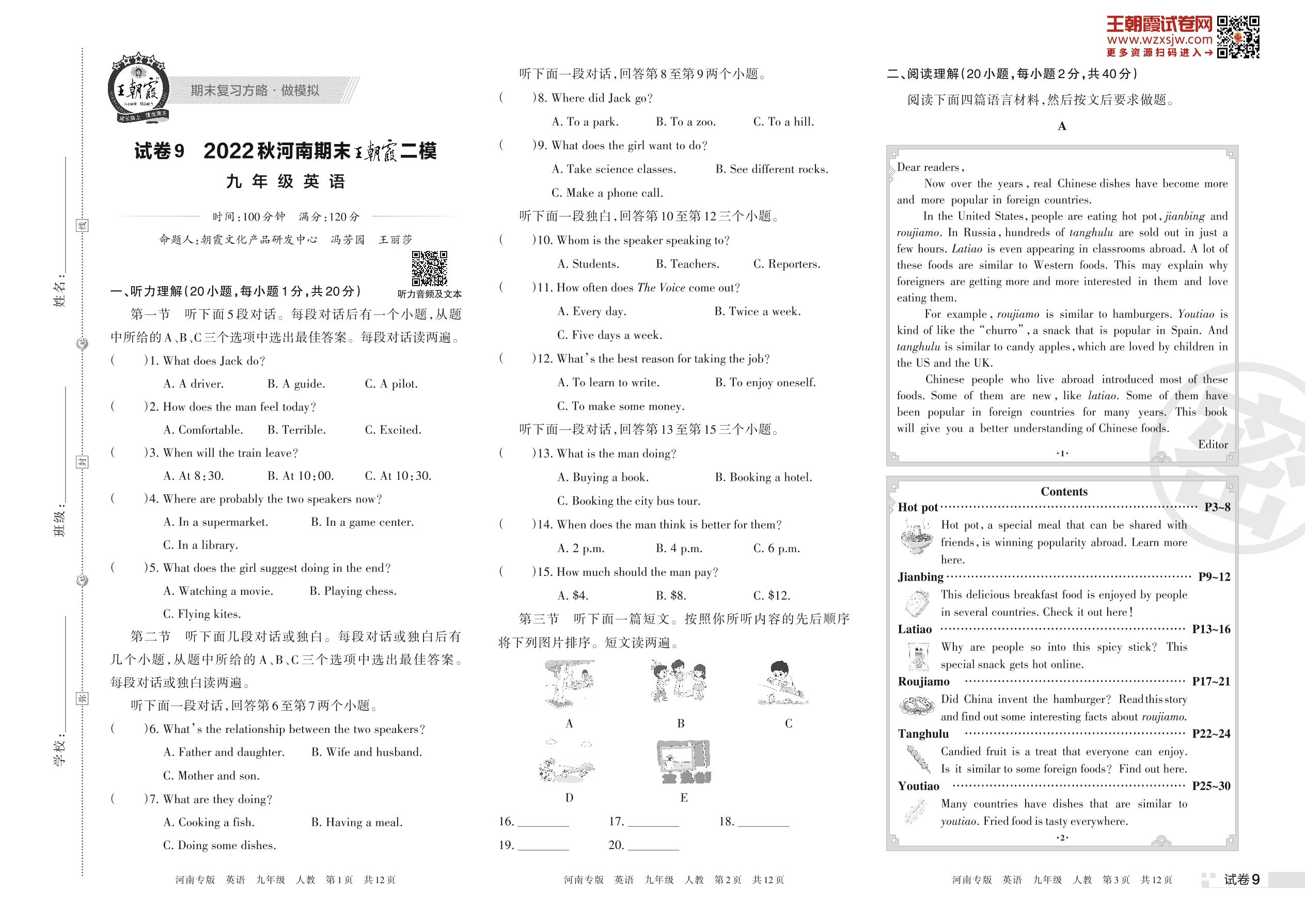 2022-2023学年第一学期王朝霞期末模拟卷九年级英语(人教版)【9】
