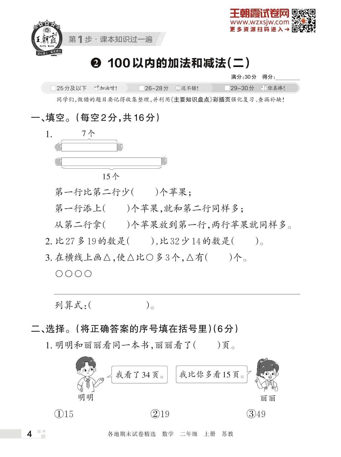 王朝霞期末过课本——2 100以内的加法和减法(二)二年级上册数学(苏教版)