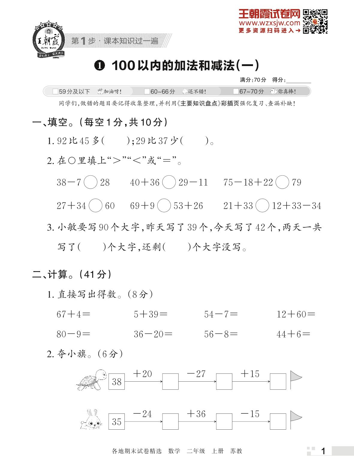王朝霞期末过课本——1 100以内的加法和减法(二)二年级上册数学(苏教版)