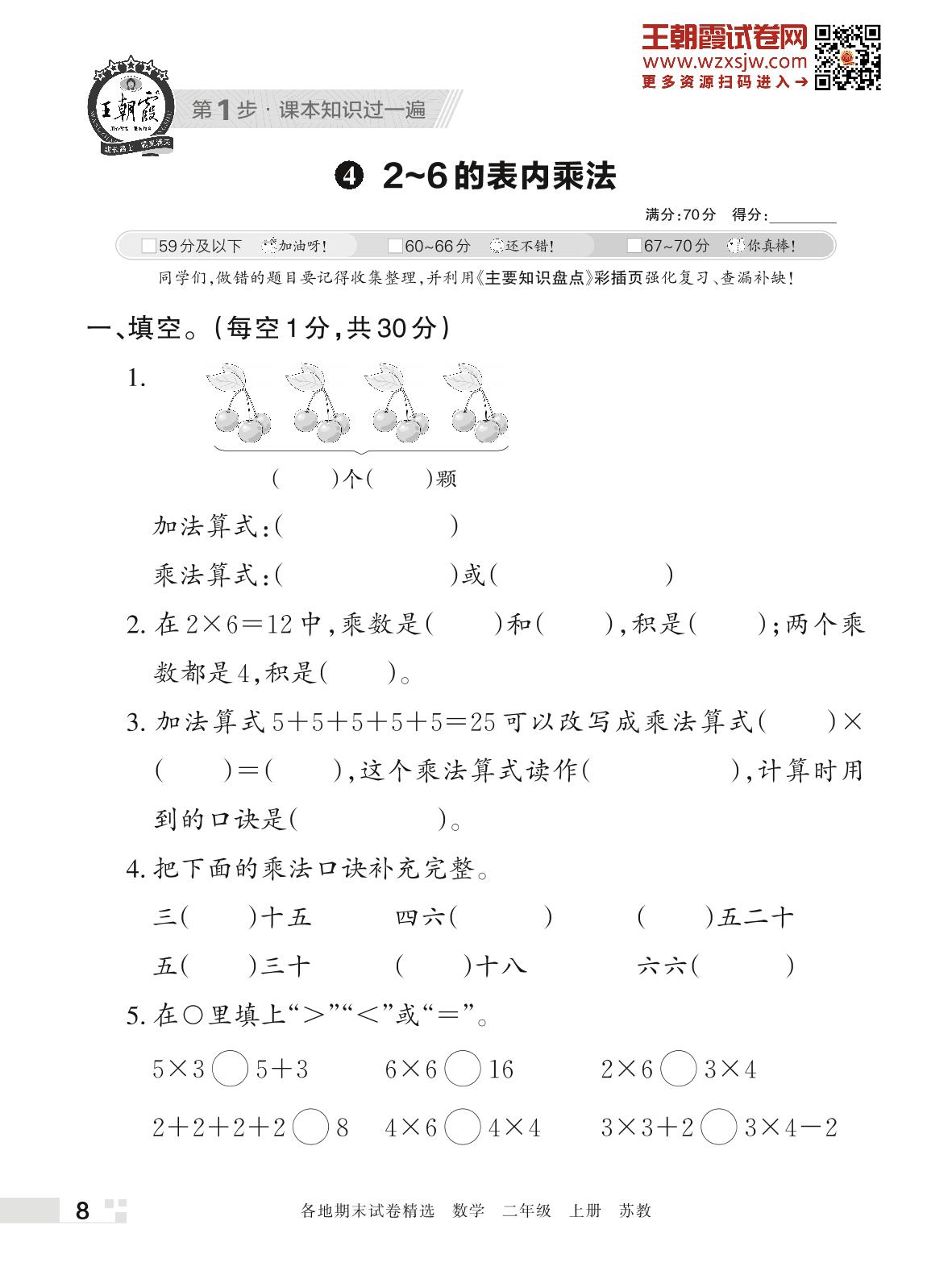 王朝霞期末过课本——4 2~6的表内乘法二年级上册数学(苏教版)