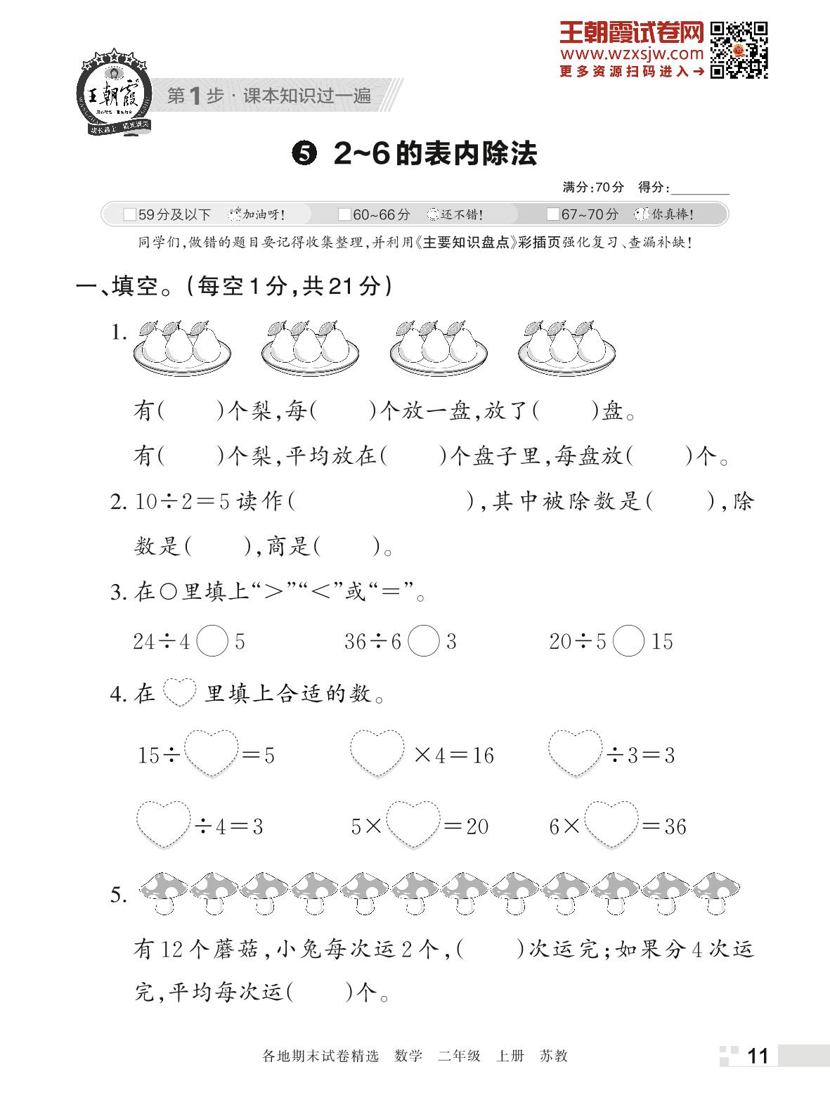王朝霞期末过课本——5 2~6的表内除法二年级上册数学(苏教版)