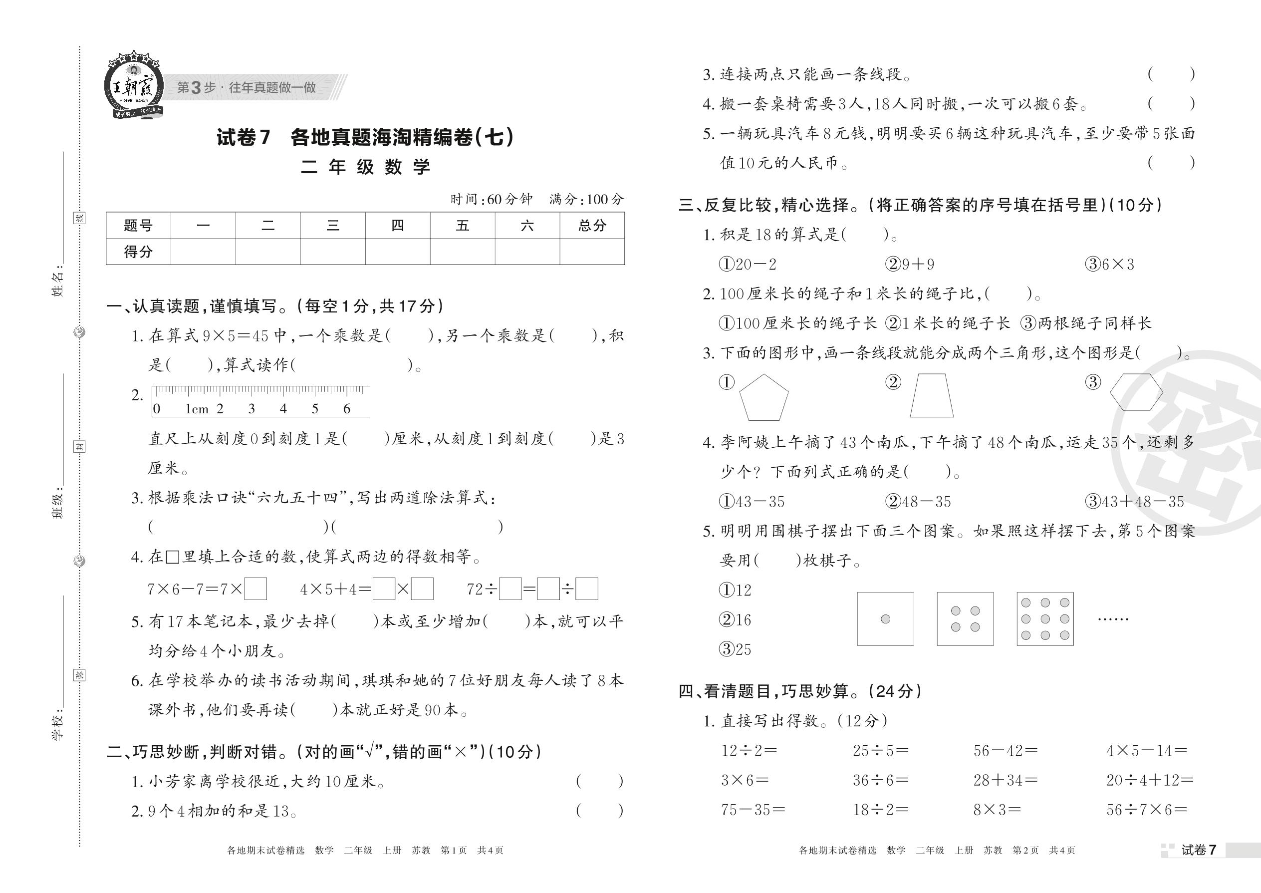 各地真题海淘精编卷(七)二年级上册数学(苏教版)【7】