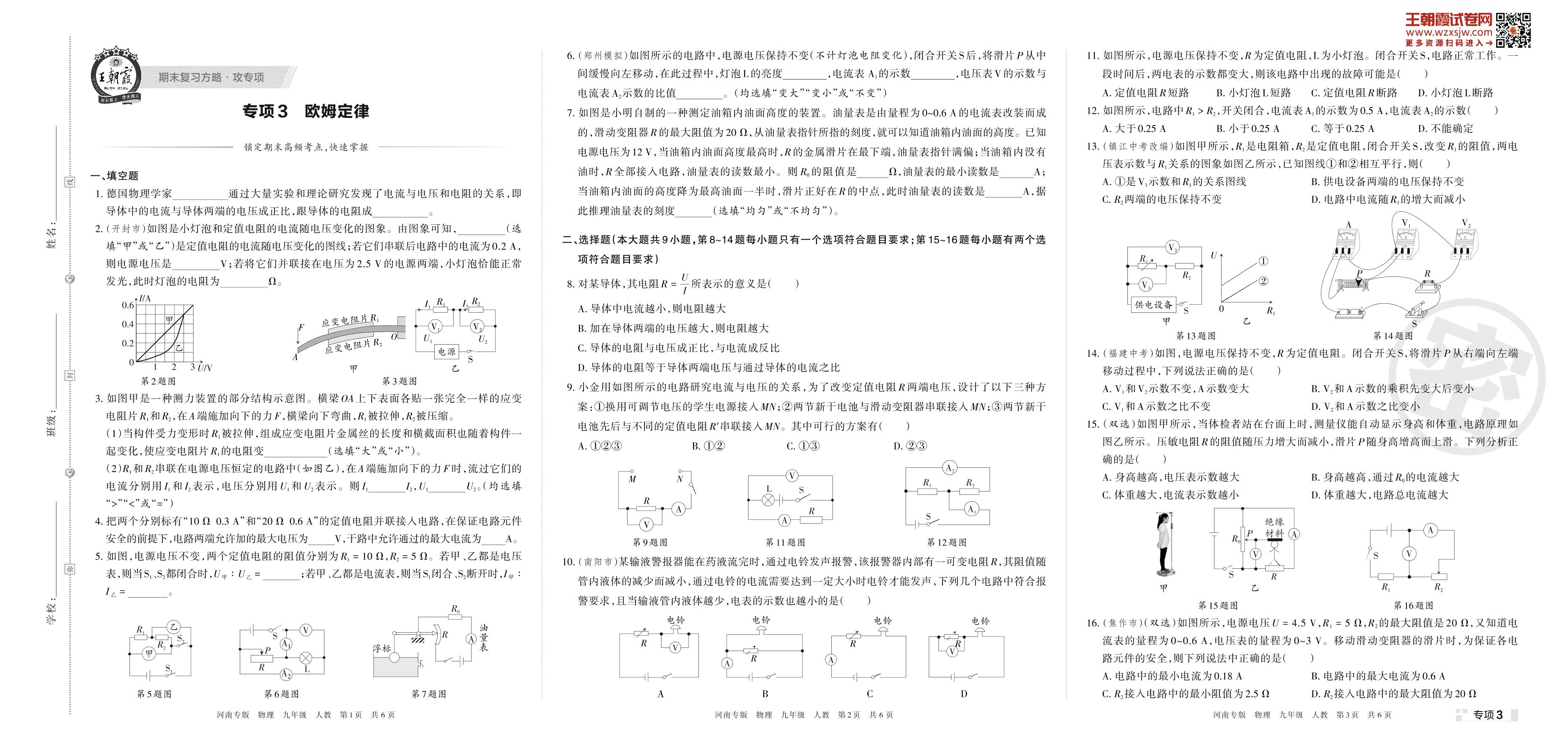 王朝霞期末专项卷——欧姆定律九年级上册物理(人教版)【3】