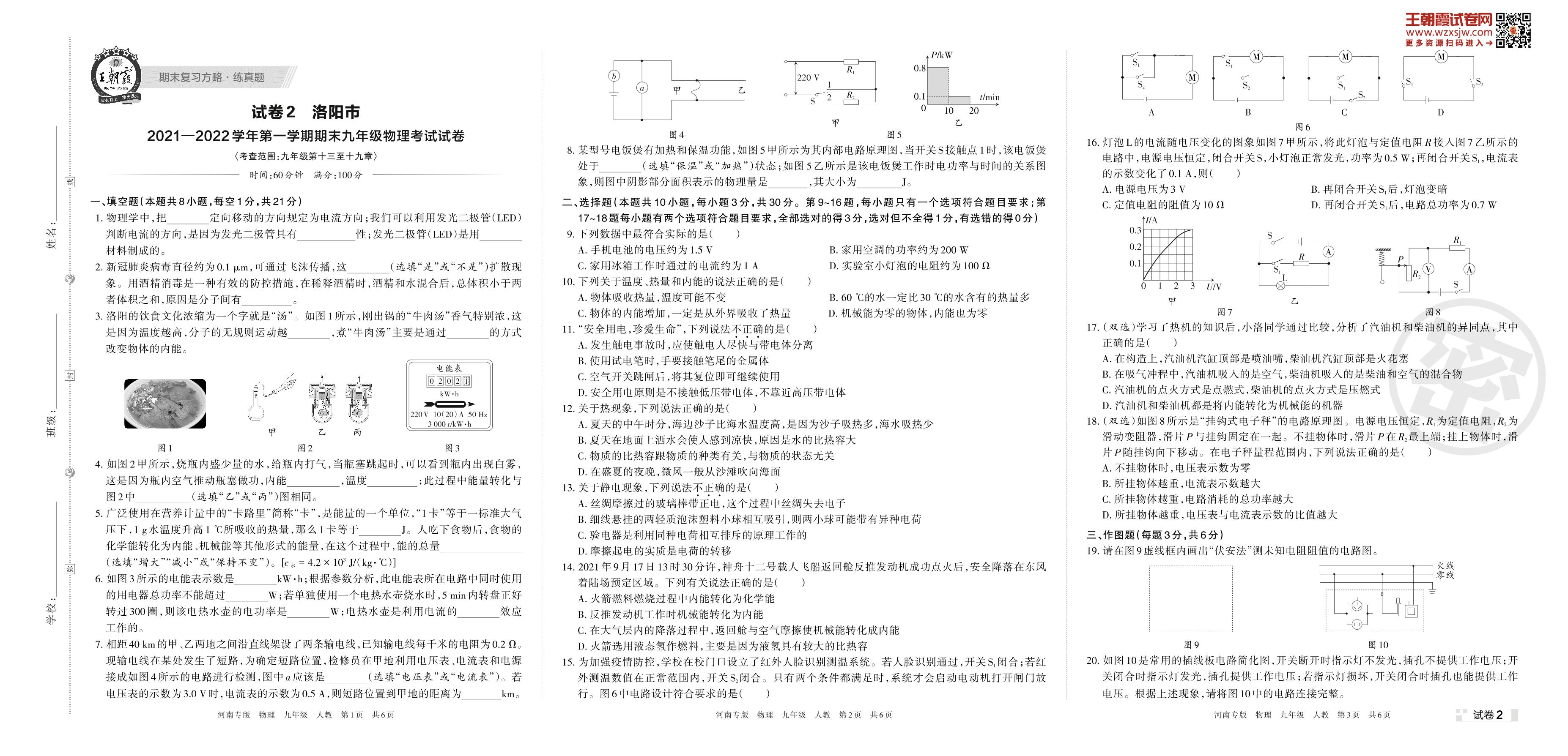 洛阳市2021—2022学年第一学期期末九年级物理考试试卷(人教版)【2】