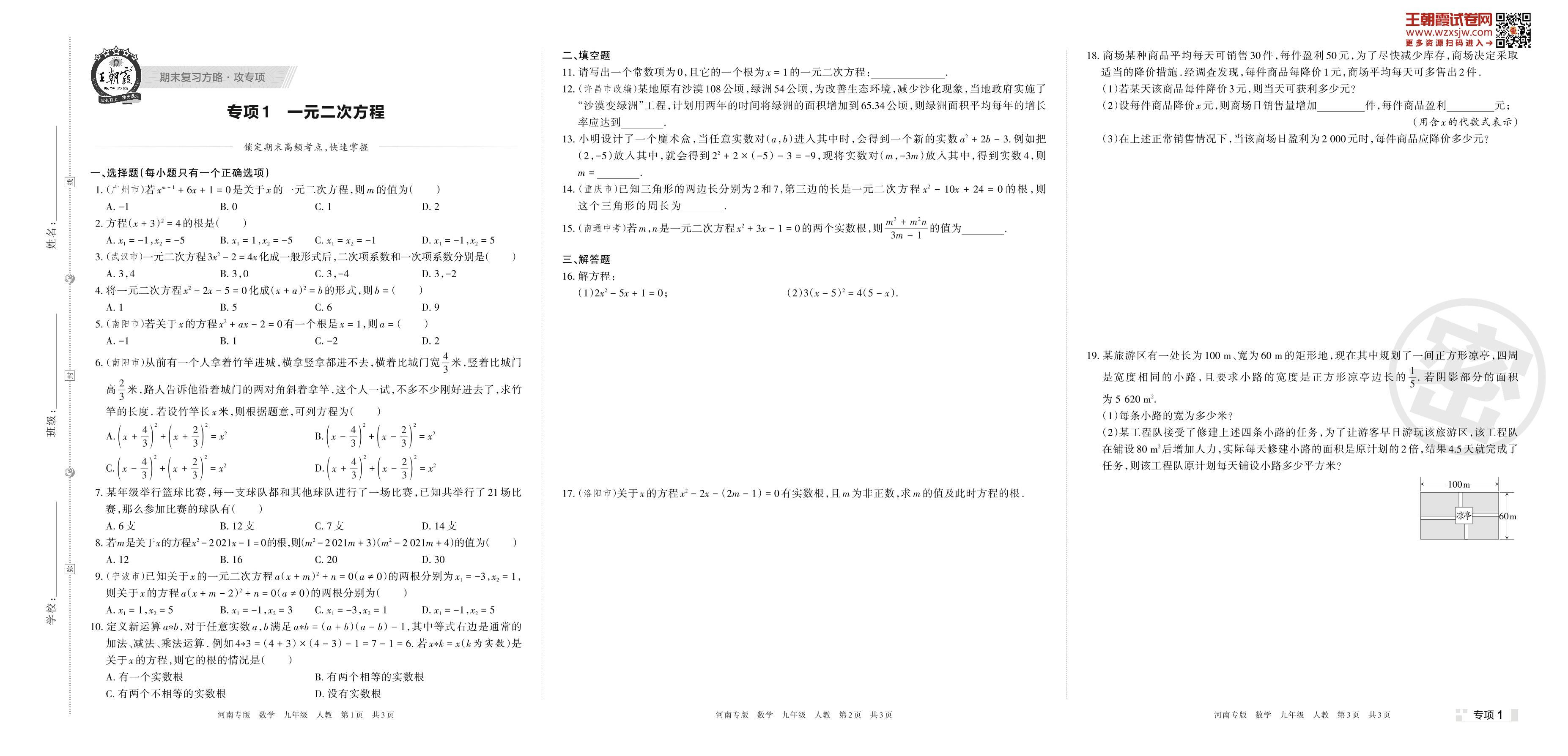 王朝霞期末专项卷——一元二次方程九年级上册数学(人教版)【1】