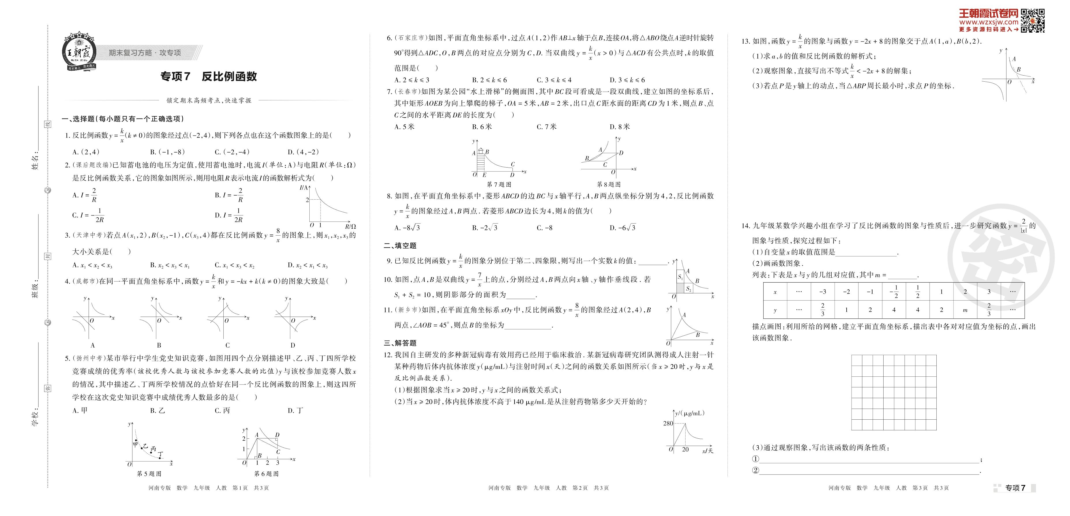 王朝霞期末专项卷——反比例函数九年级上册数学(人教版)【7】