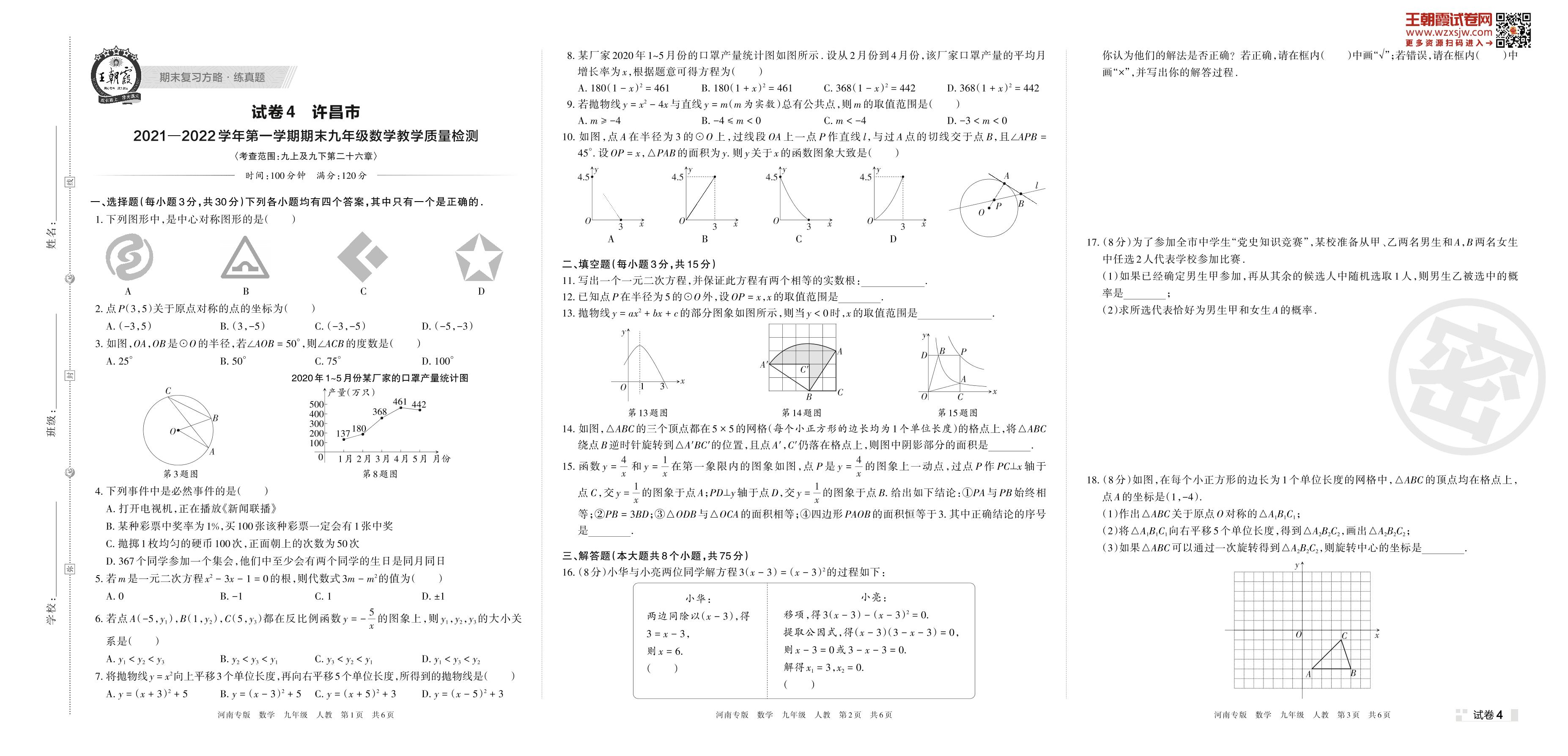 许昌市2021—2022学年第一学期期末九年级数学教学质量检测(人教版)【4】
