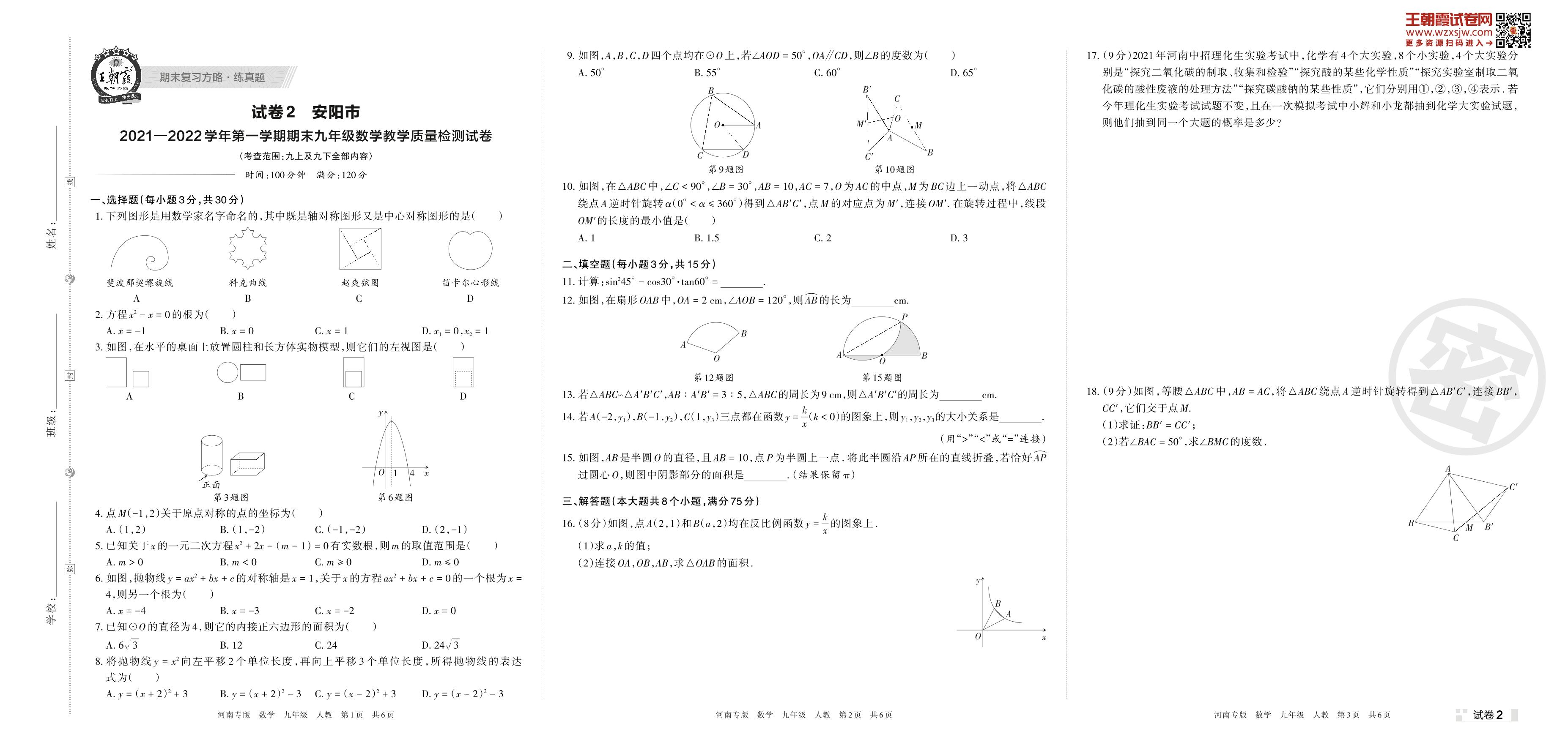 安阳市2021—2022学年第一学期期末九年级数学教学质量检测试卷(人教版)【2】