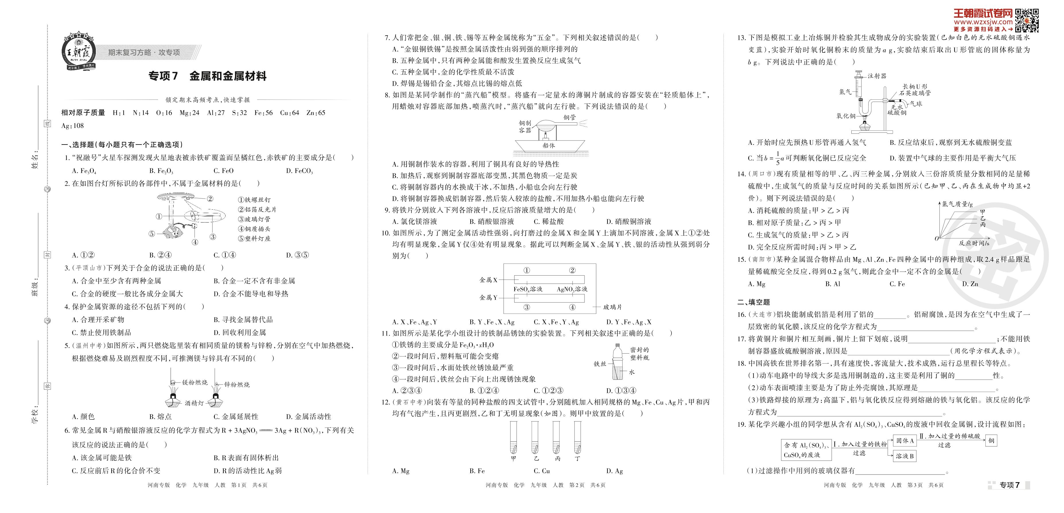 王朝霞期末专项卷——金属和金属材料九年级上册化学(人教版)【7】