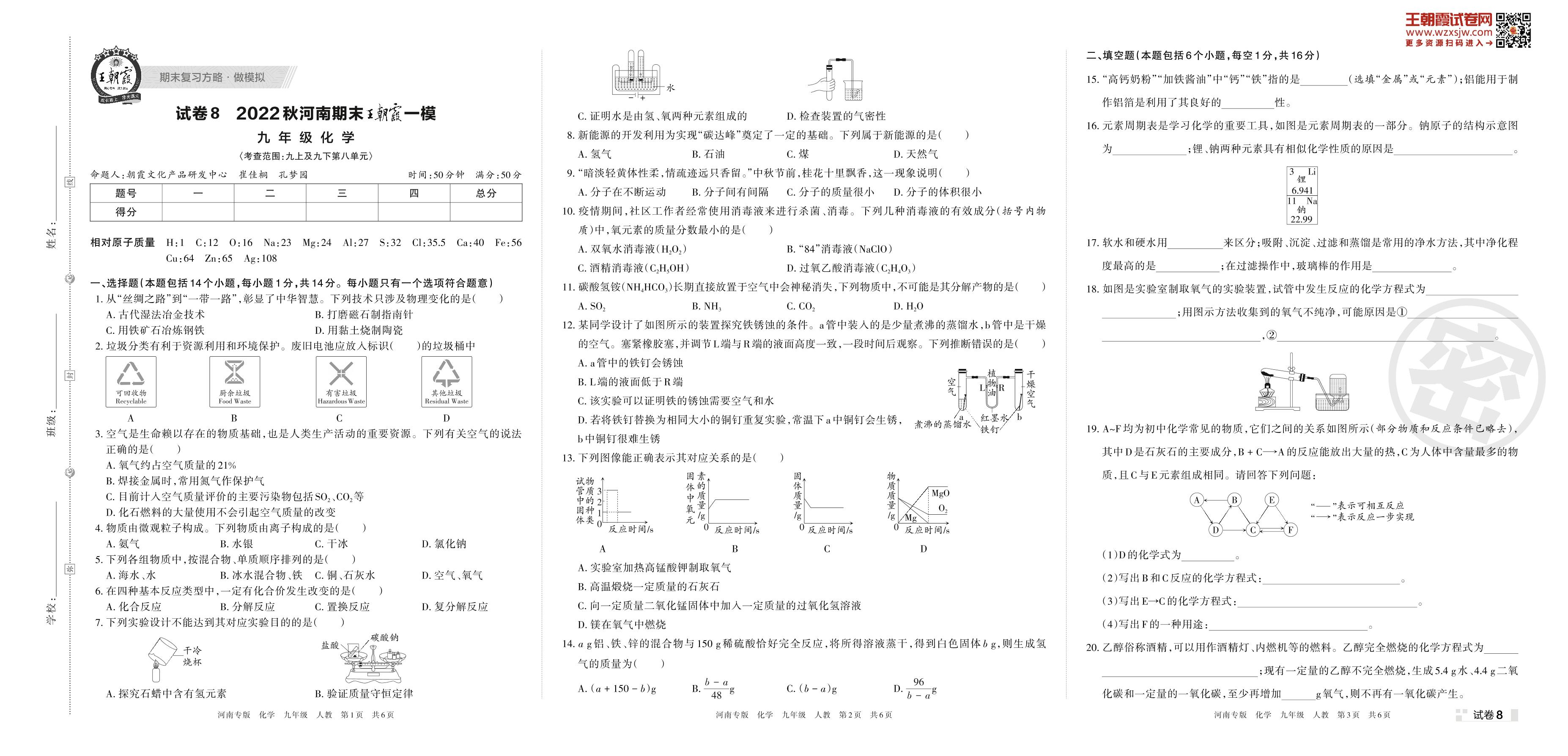 王朝霞期末模拟卷九年级上册化学(人教版)_R221122164714731【8】