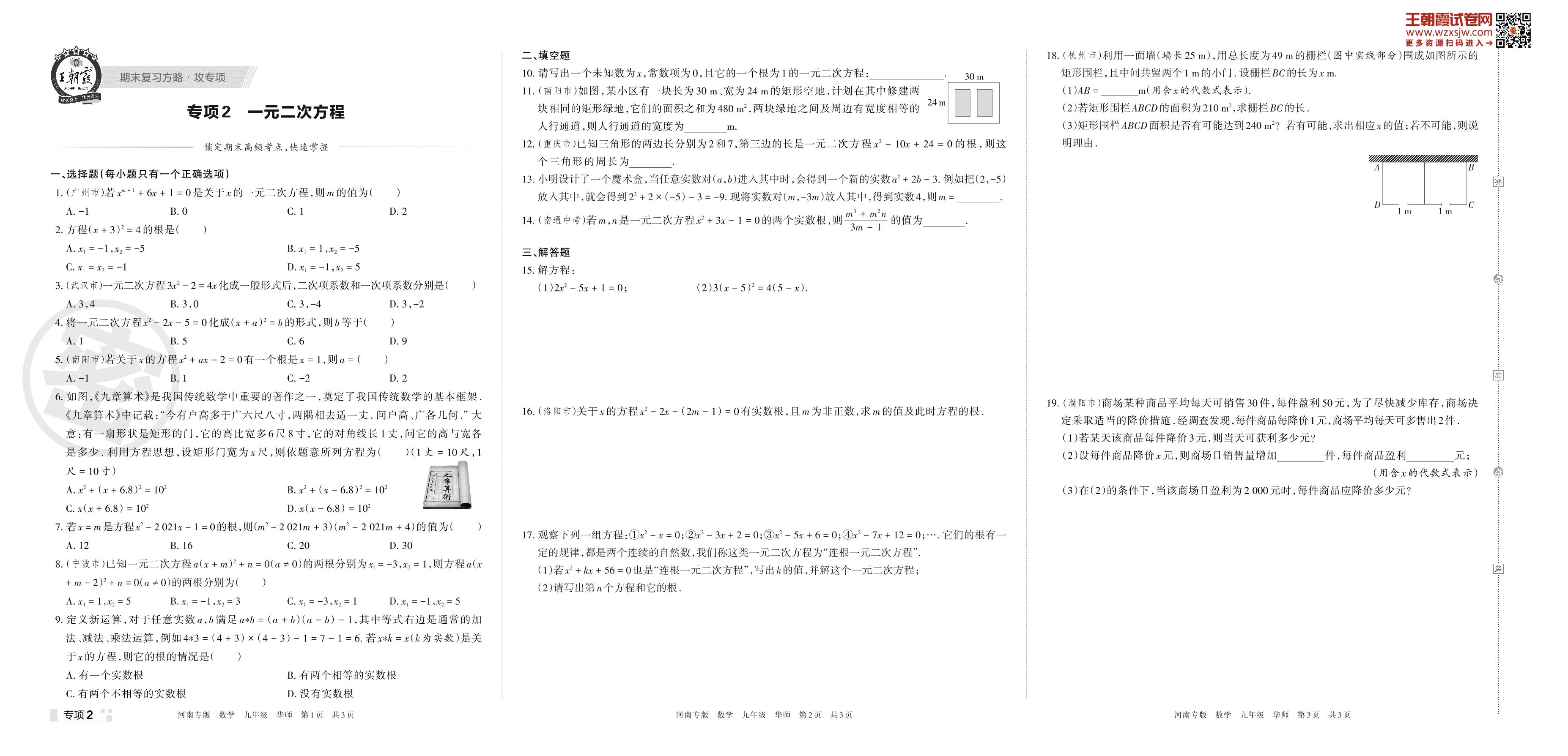 王朝霞期末专项卷——一元二次方程九年级上册数学(华师版)【2】