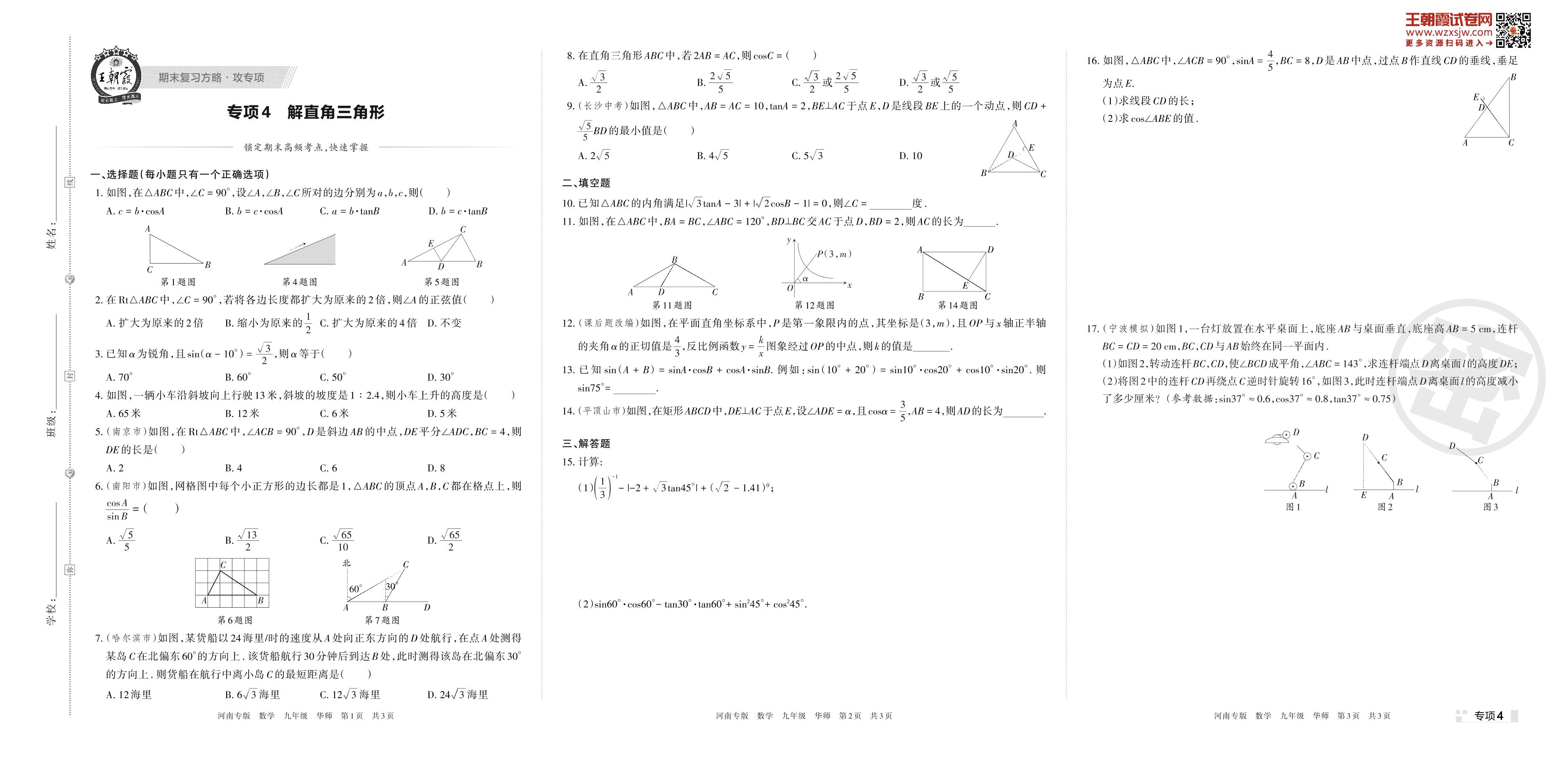 王朝霞期末专项卷——解直角三角形九年级上册数学(华师版)【4】