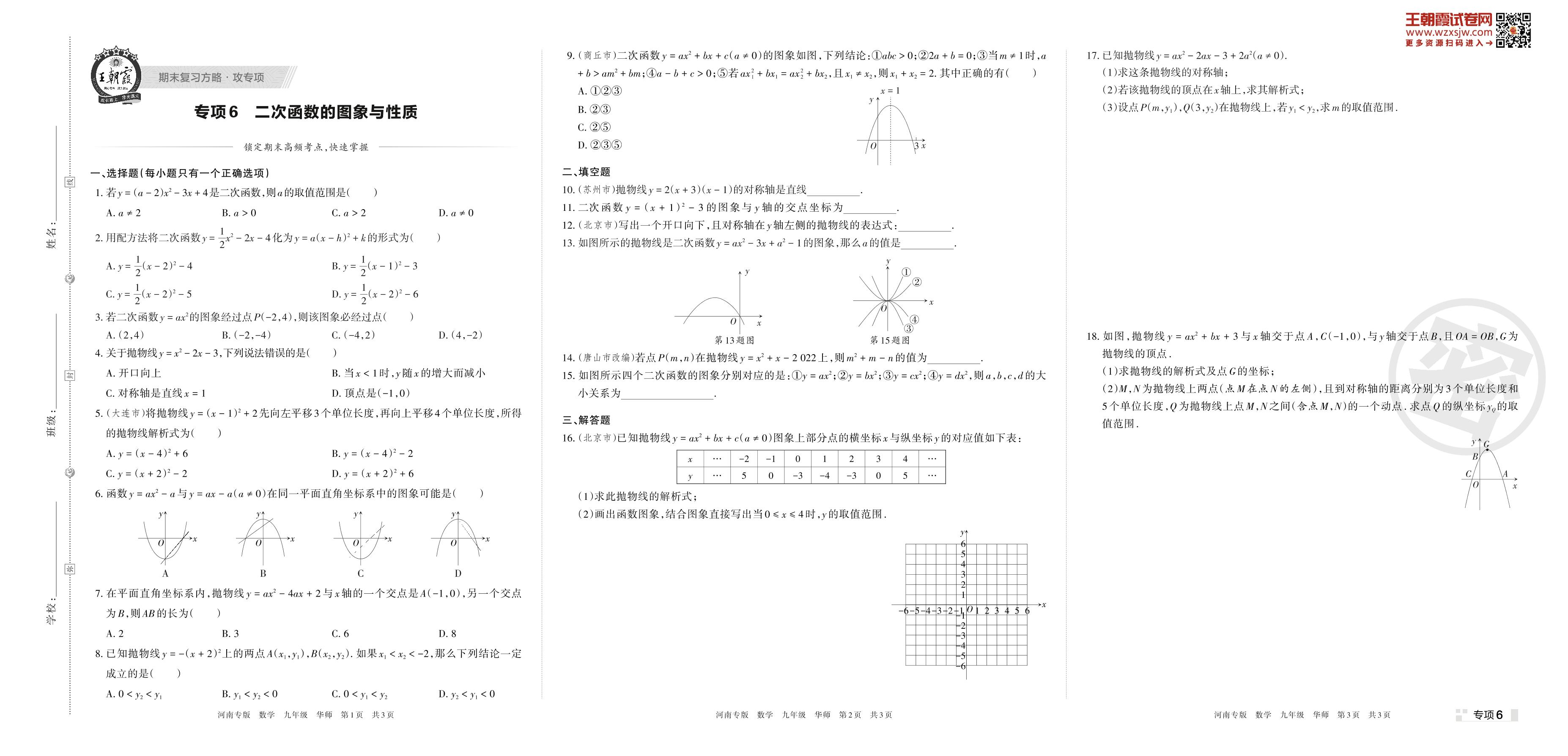 王朝霞期末专项卷——二次函数的图象与性质九年级上册数学(华师版)【6】