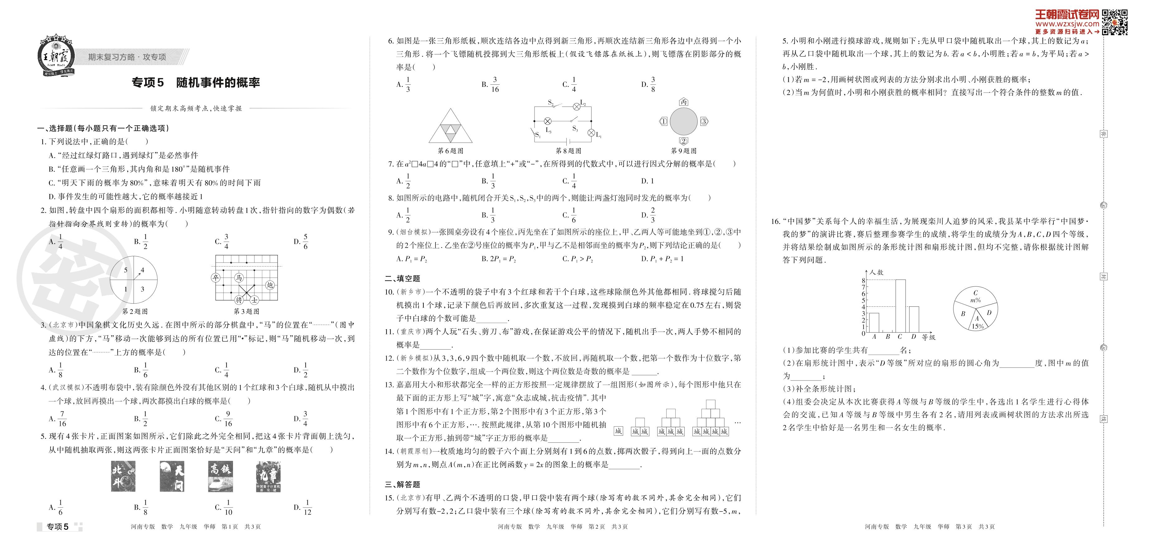 王朝霞期末专项卷——随机事件的概率九年级上册数学(华师版)【5】