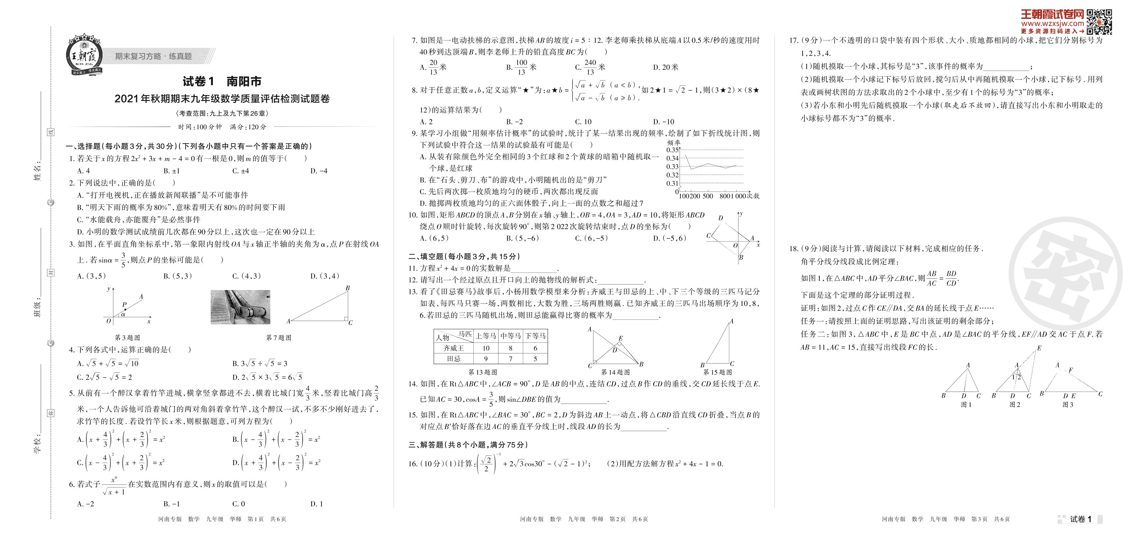 南阳市2021年秋期期末九年级数学质量评估检测试题卷(华师版)【1】