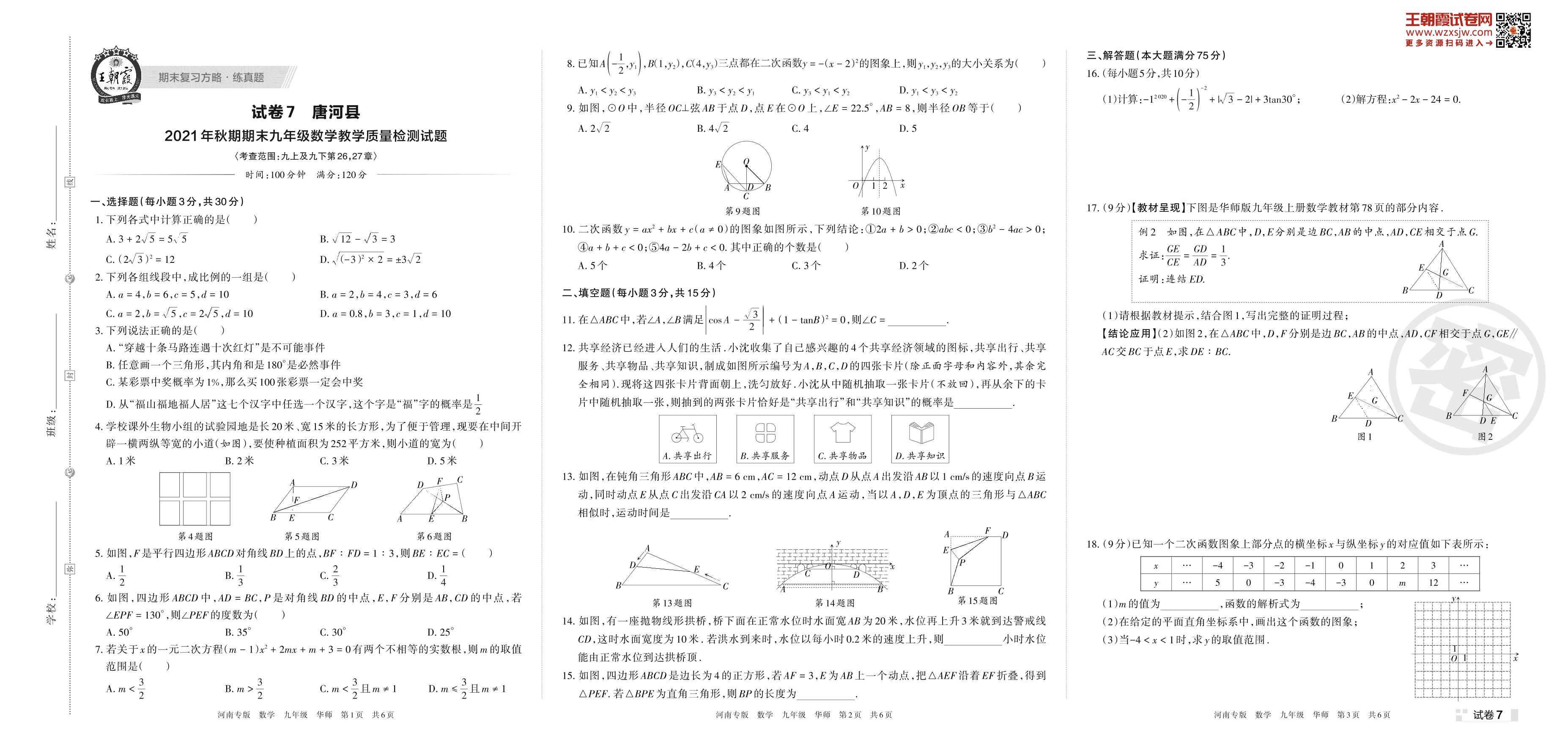 九年级数学华师版上册,下册期末卷