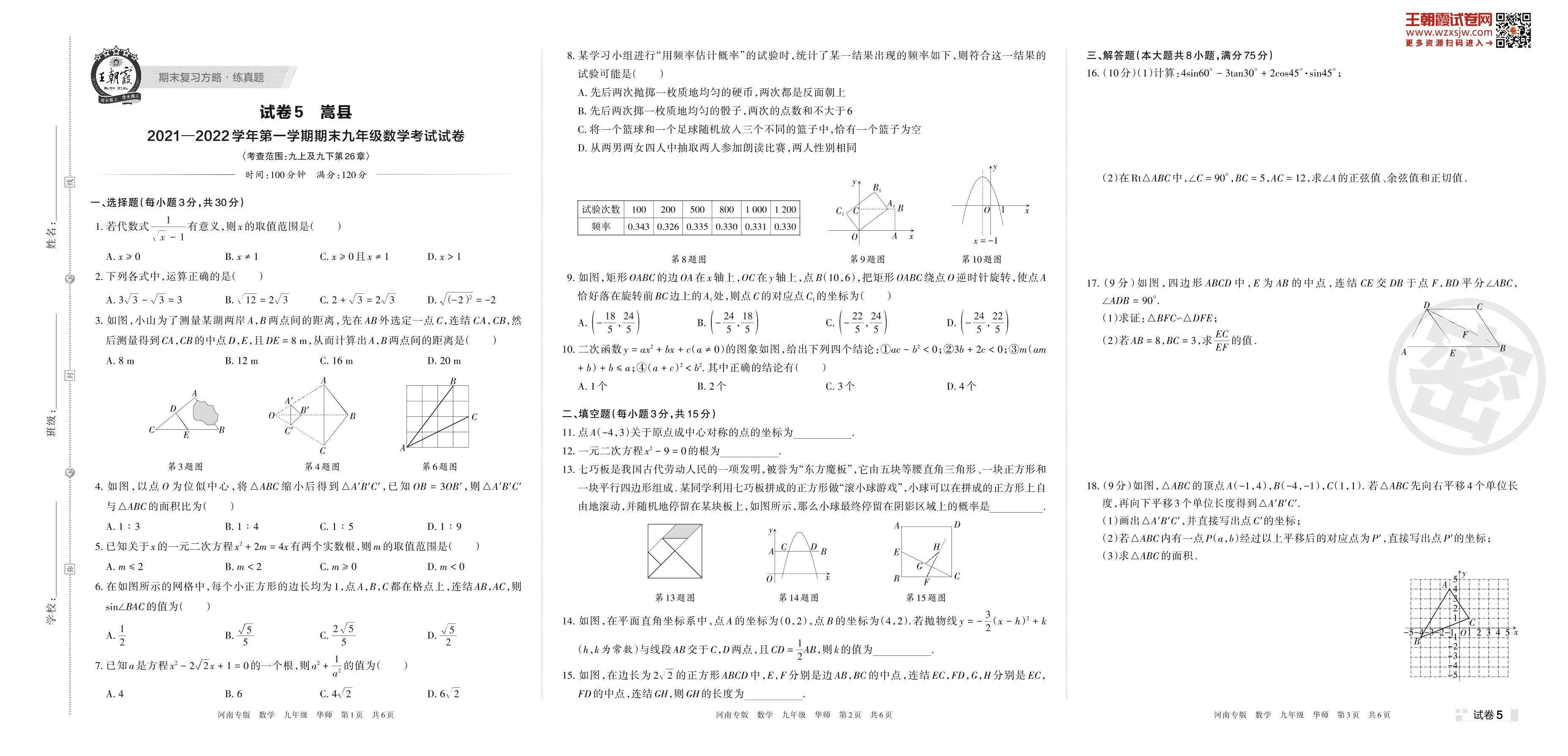 嵩县2021—2022学年第一学期期末九年级数学考试试卷(华师版)【5】