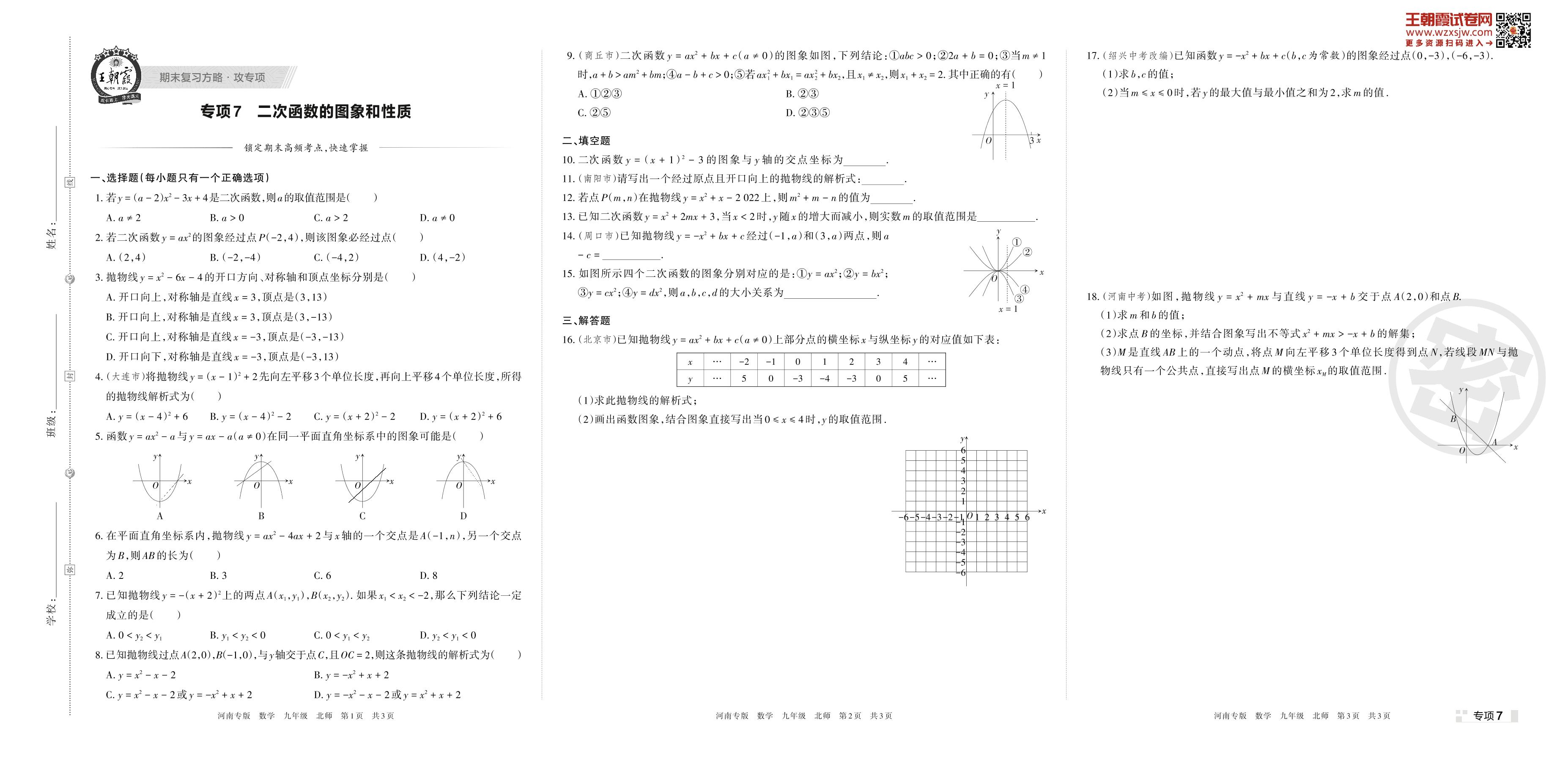 王朝霞期末专项卷——二次函数的图象和性质九年级上册数学(北师版)【7】