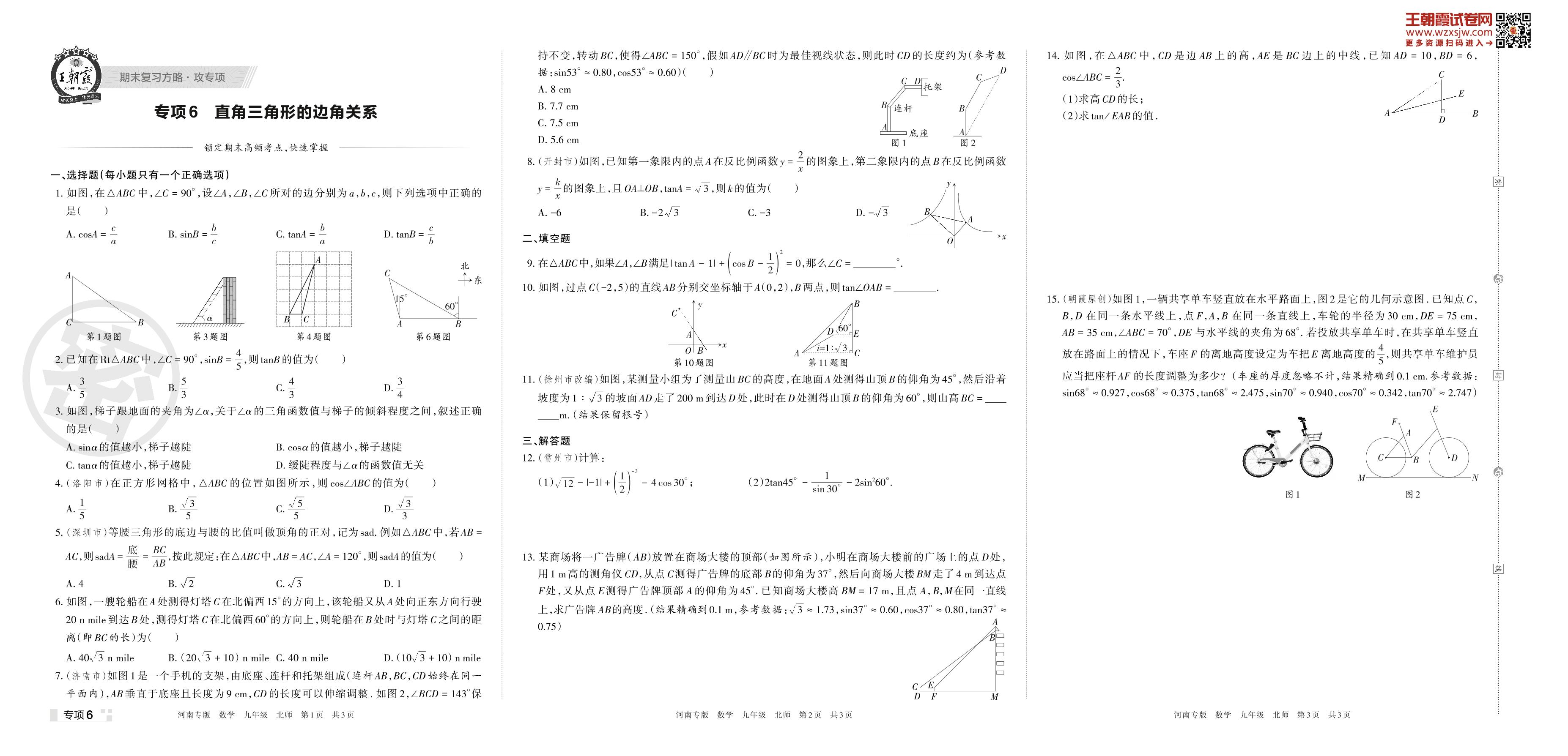 王朝霞期末专项卷——直角三角形的边角关系九年级上册数学(北师版)【6】