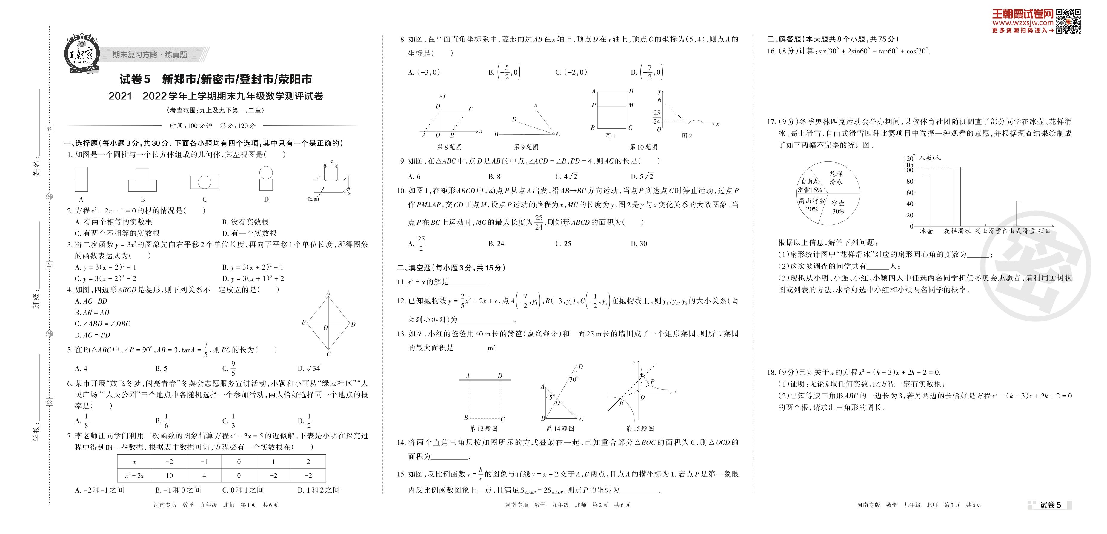 新郑市、新密市、登封市、荥阳市2021—2022学年上学期期末九年级数学测评试卷(北师版)【5】