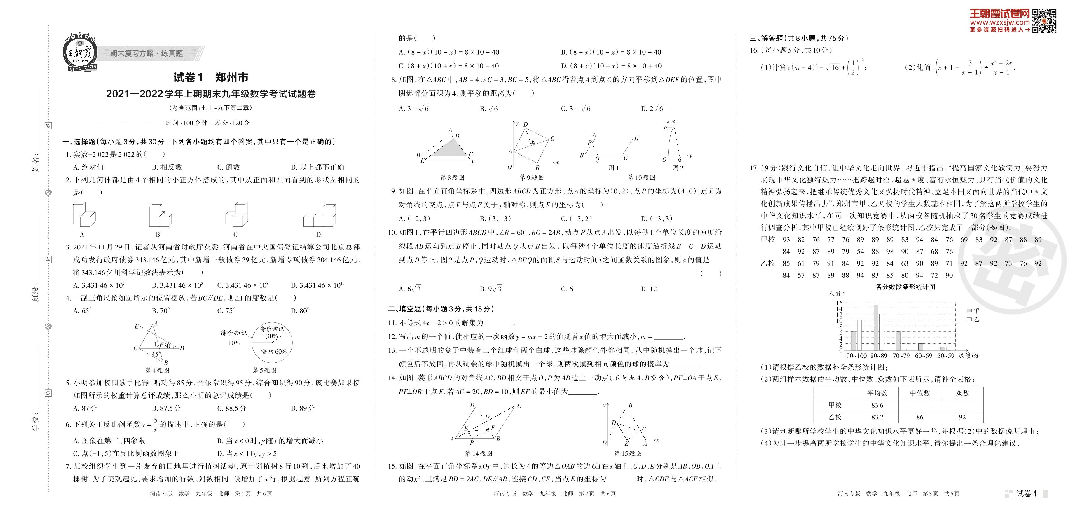 郑州市2021—2022学年上期期末九年级数学考试试题卷(北师版)【1】