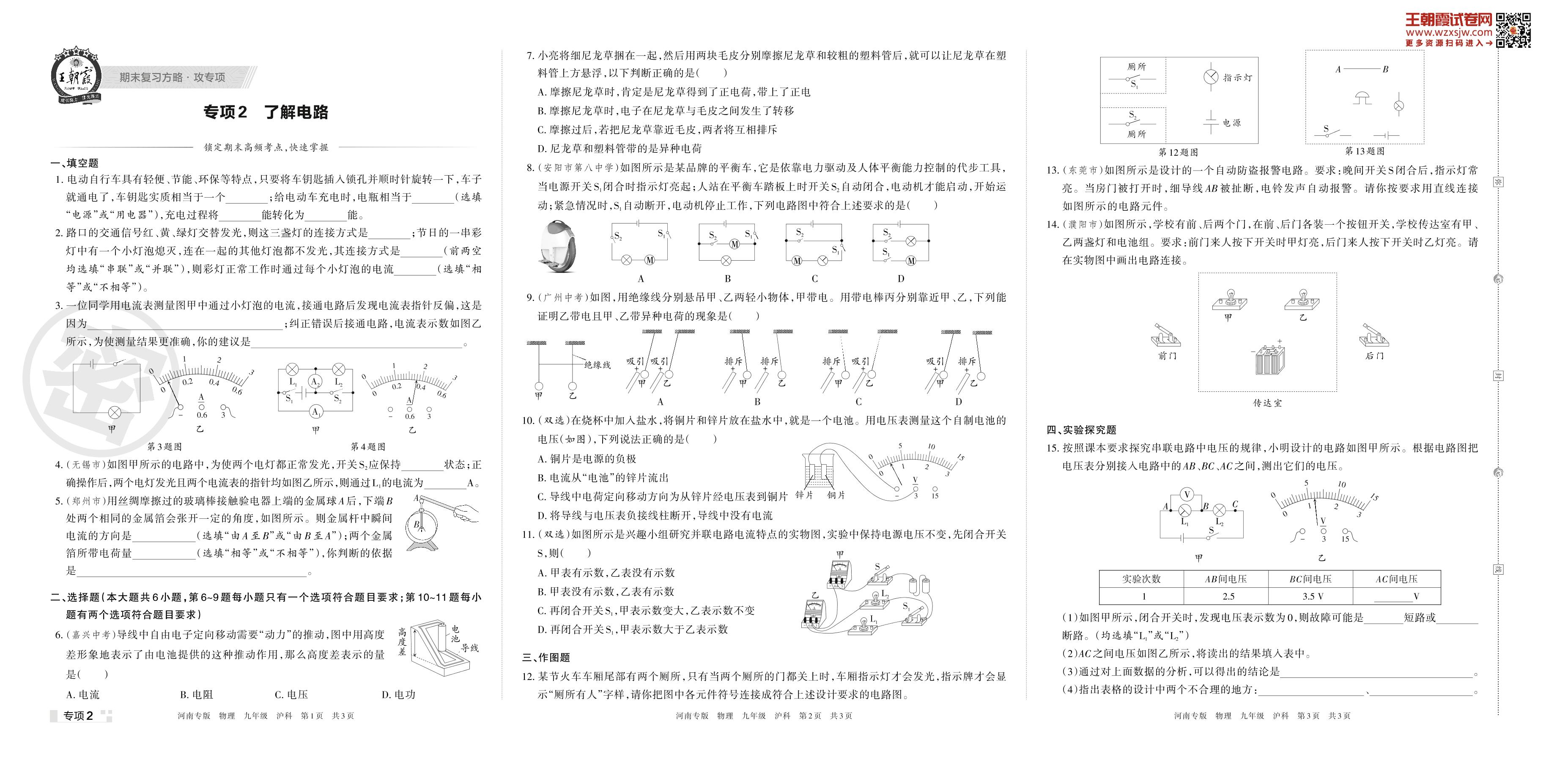 王朝霞期末专项卷——了解电路九年级上册物理(沪科版)【2】