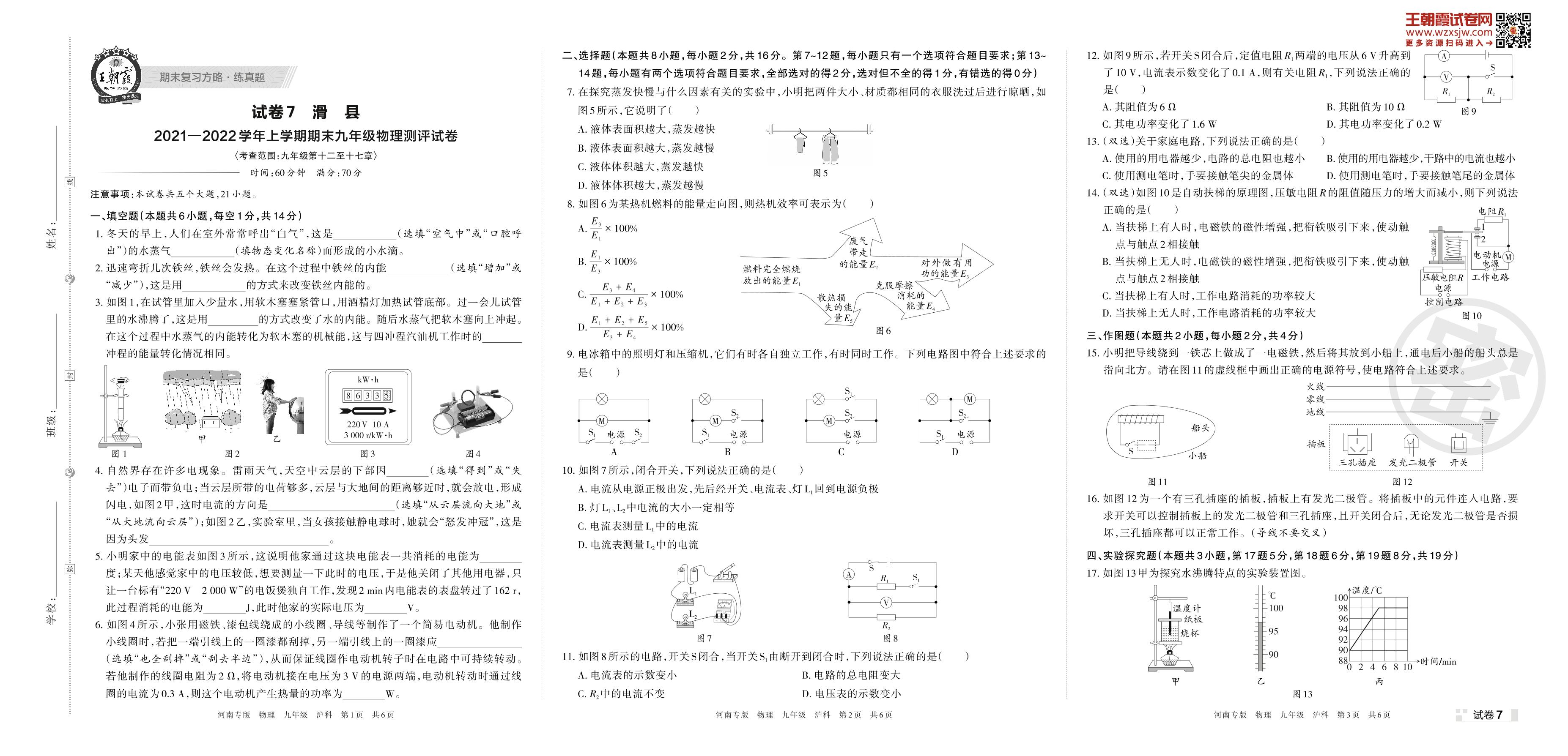滑县2021—2022学年上学期期末九年级物理测评试卷(沪科版)【7】