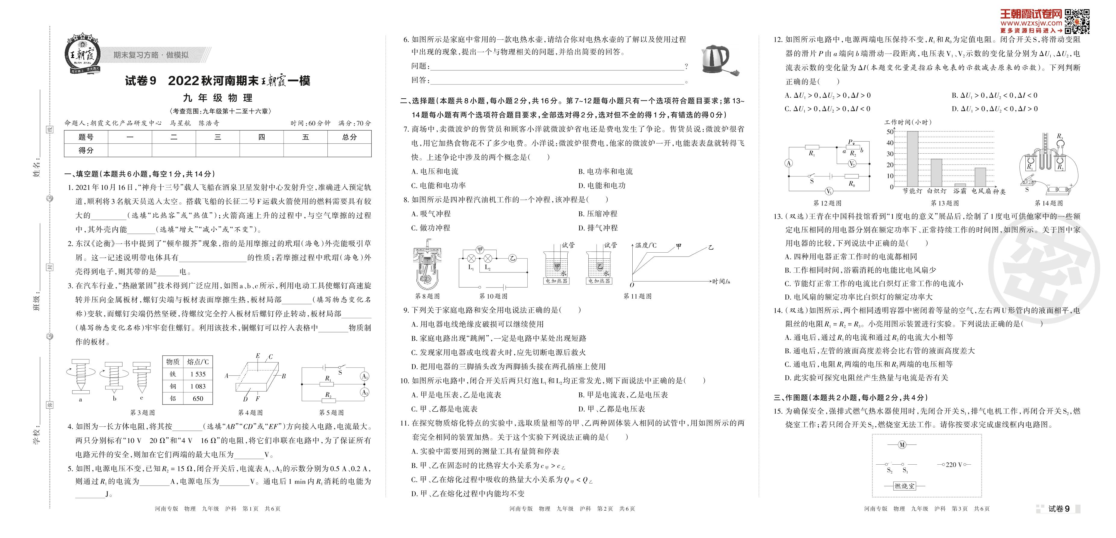 2022-2023学年第一学期王朝霞期末模拟卷九年级物理(沪科版)【9】