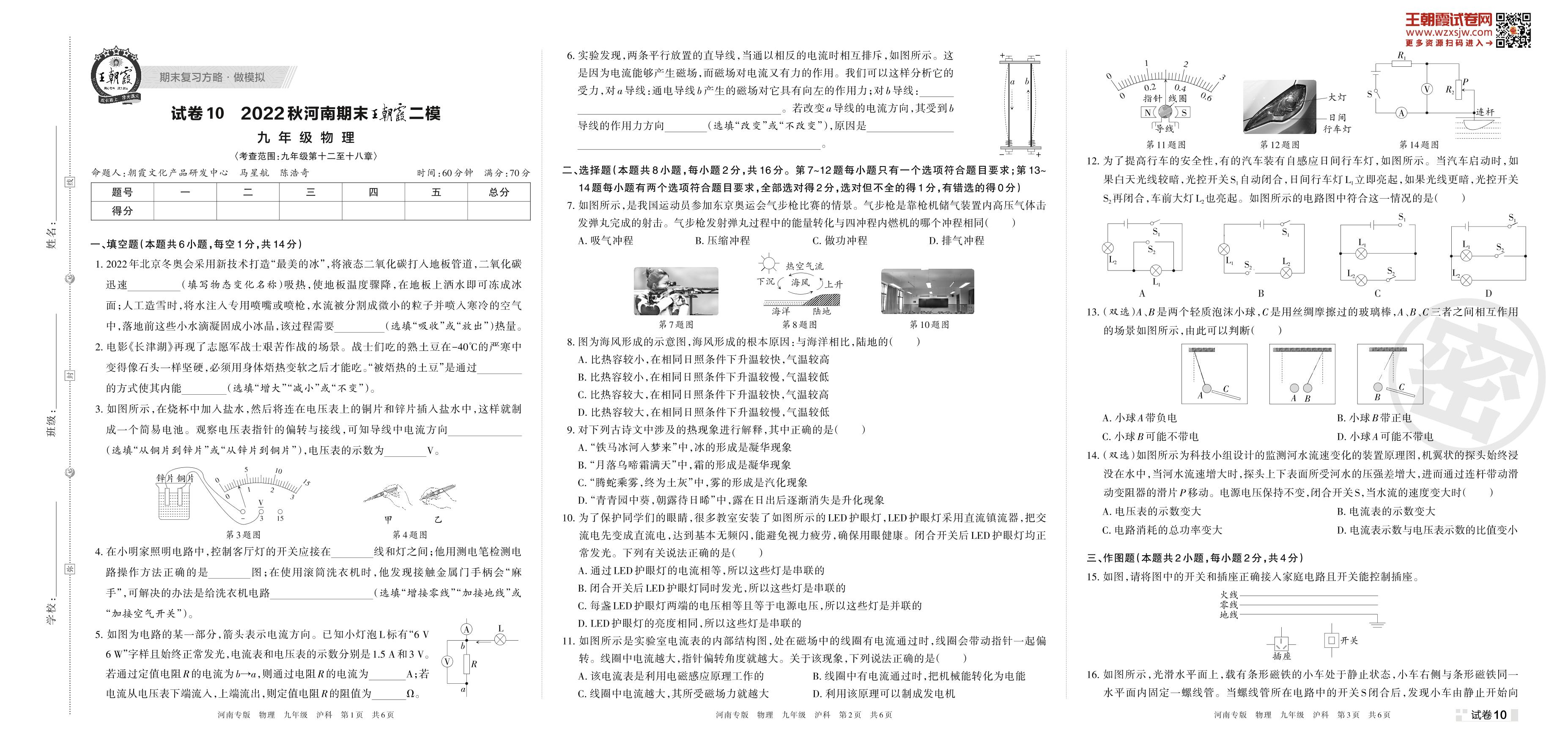 2022-2023学年第一学期王朝霞期末模拟卷九年级物理(沪科版)【10】