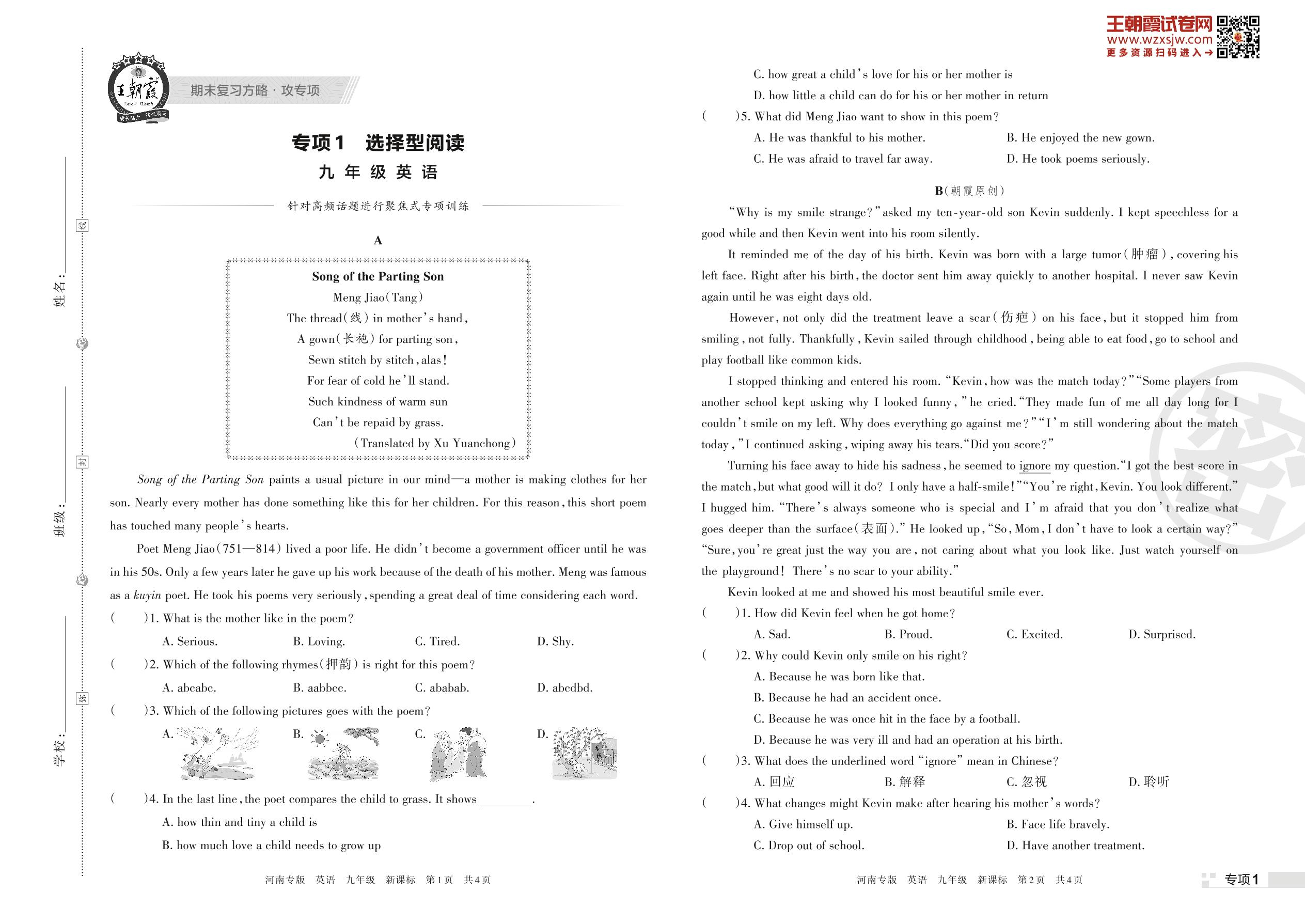 王朝霞期末专项卷——选择型阅读九年级上册英语(新课标)【1】