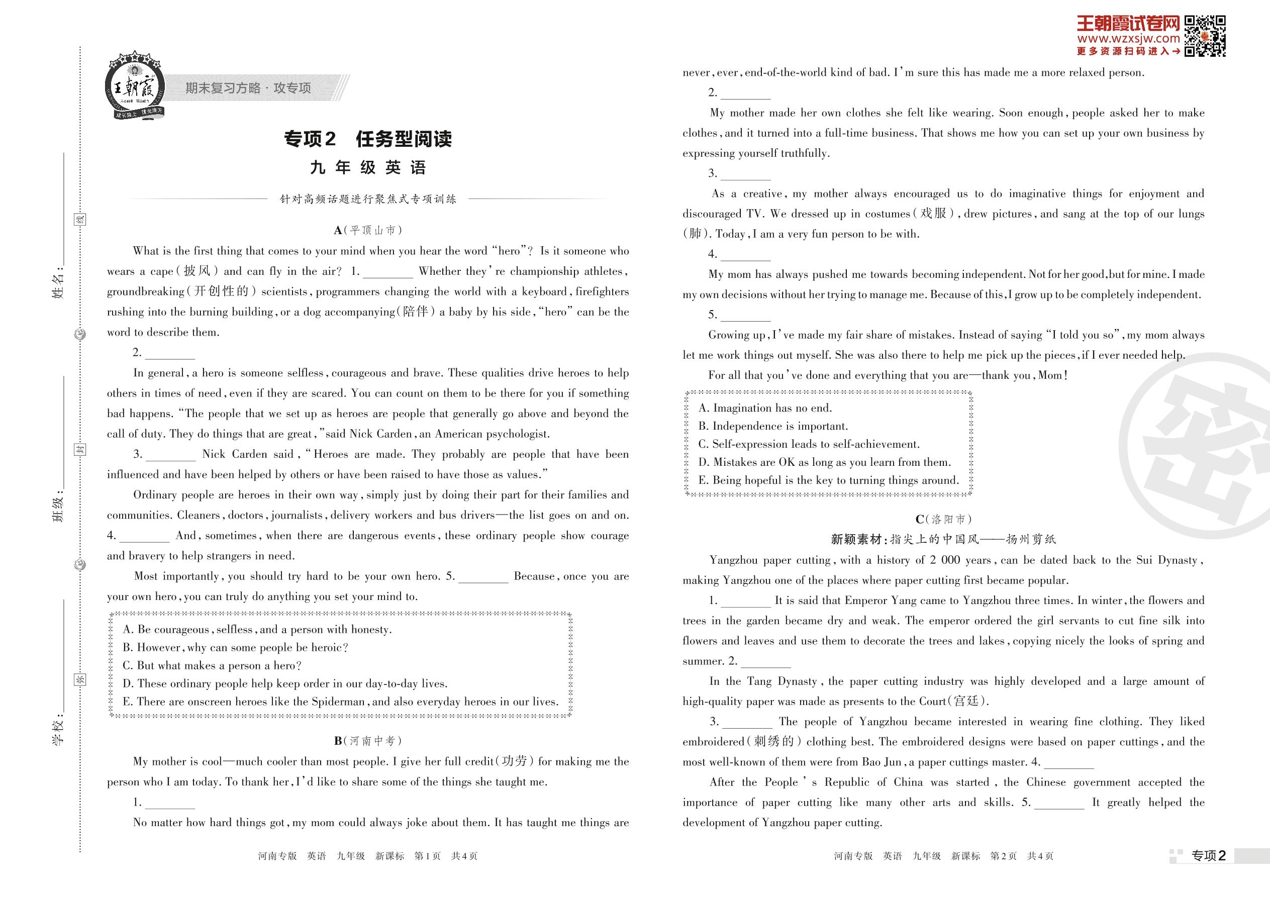 王朝霞期末专项卷——任务型阅读九年级上册英语(新课标)【2】