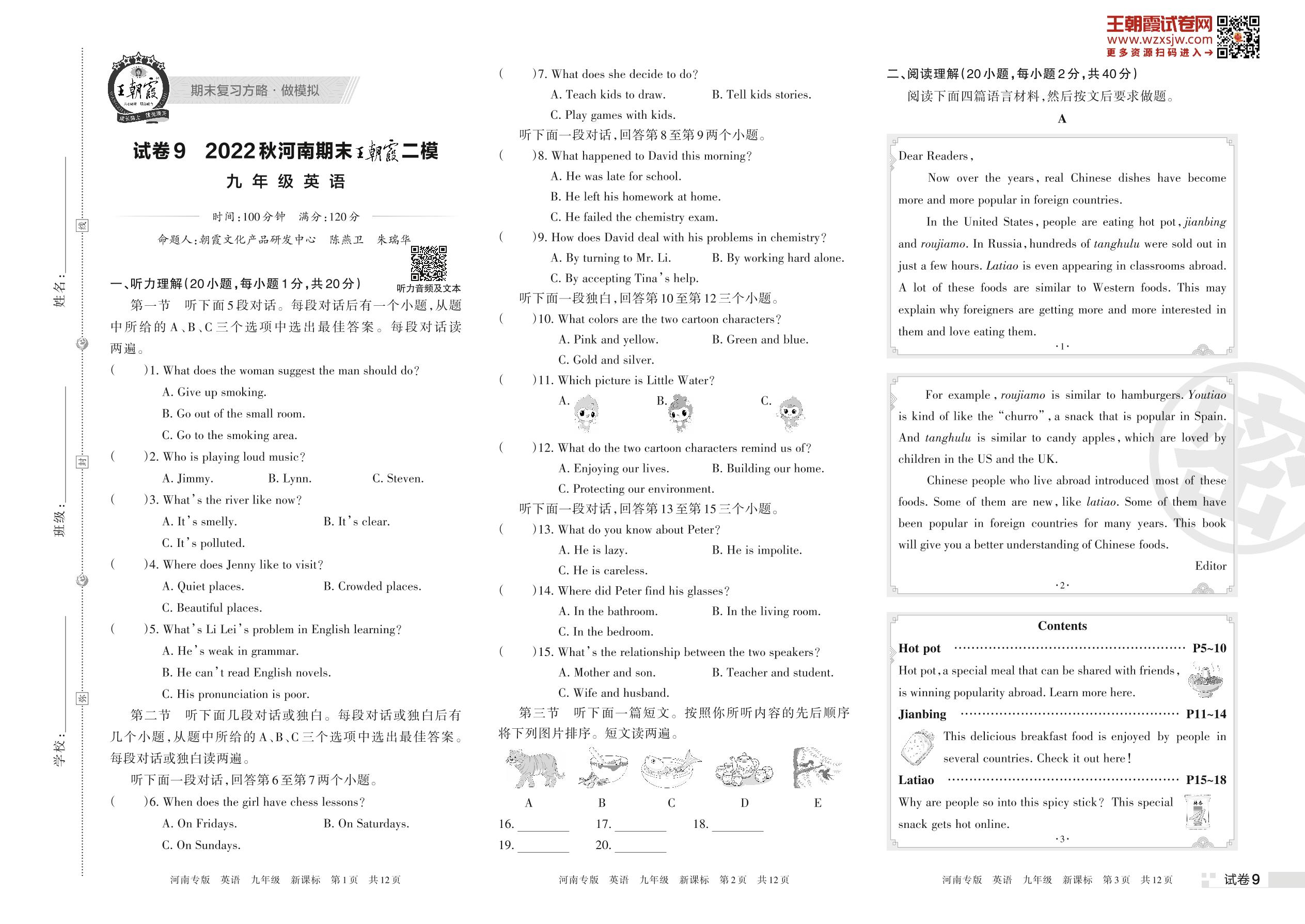 王朝霞期末模拟卷九年级上册英语(新课标)【9】
