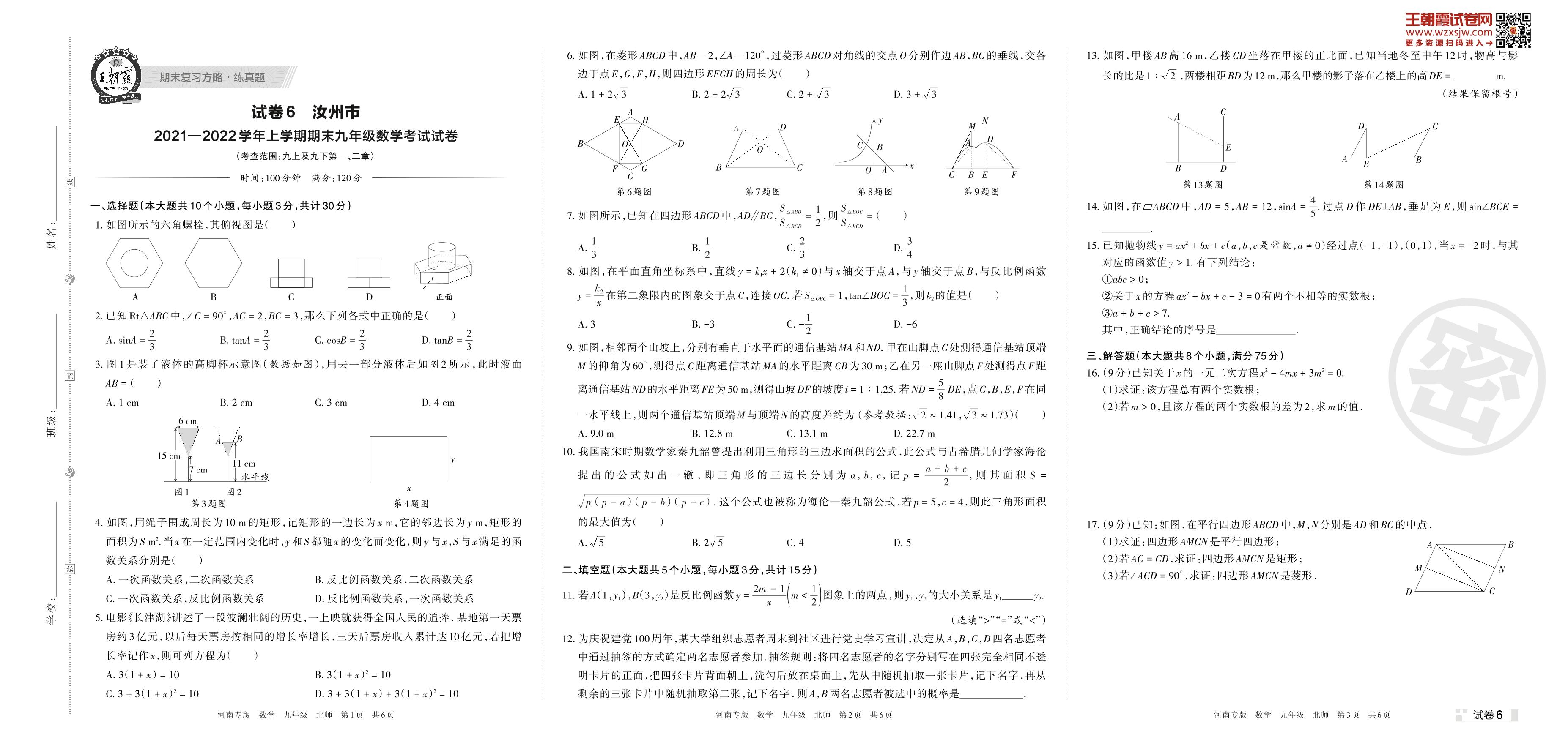 汝州市2021—2022学年上学期期末九年级数学考试试卷(北师版)【6】