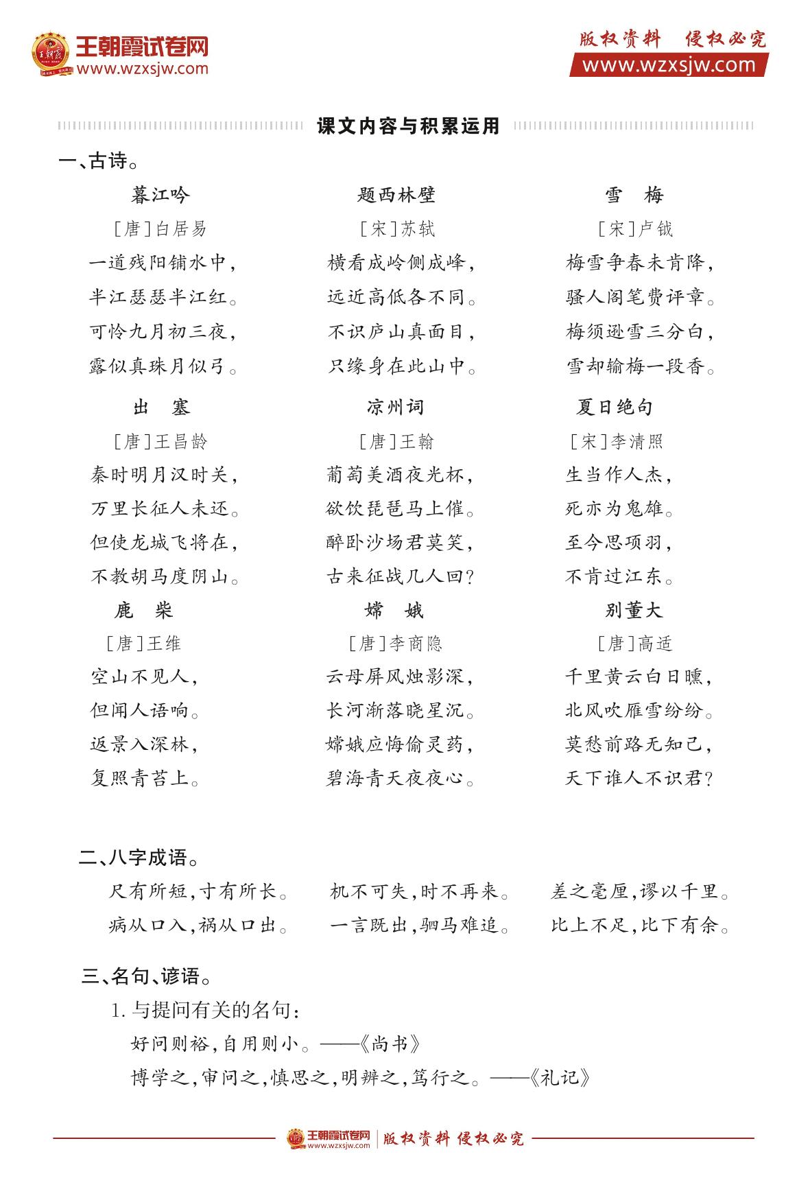 四年级上册 背诵内容梳理(人教版)