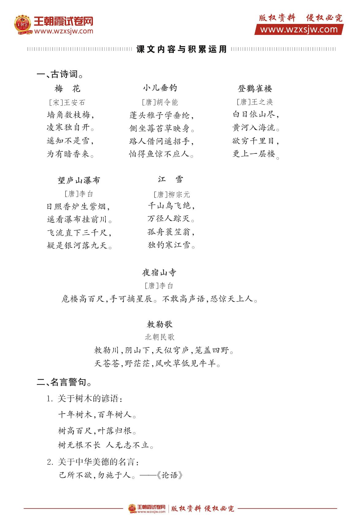 二年级上册 背诵内容梳理(人教版)
