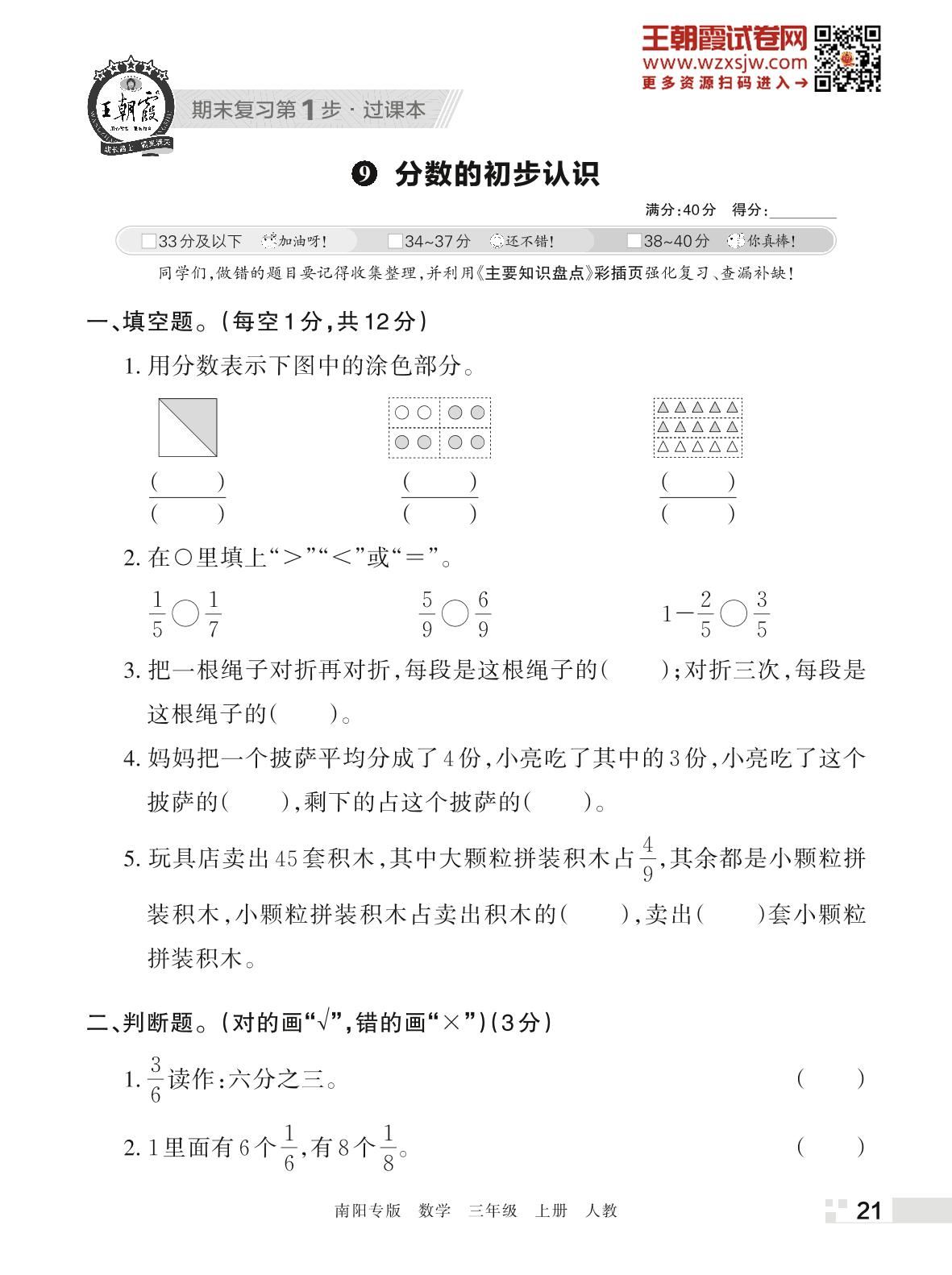 王朝霞期末过课本——9 分数的初步认识三年级上册数学(人教版)_R221122213120284