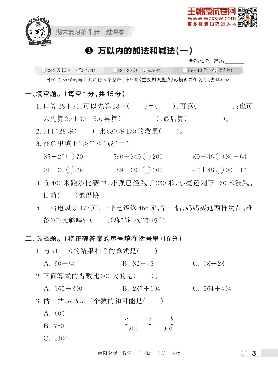 王朝霞期末过课本——2 万以内的加法和减法(一)三年级上册数学(人教版)_R221122213121787