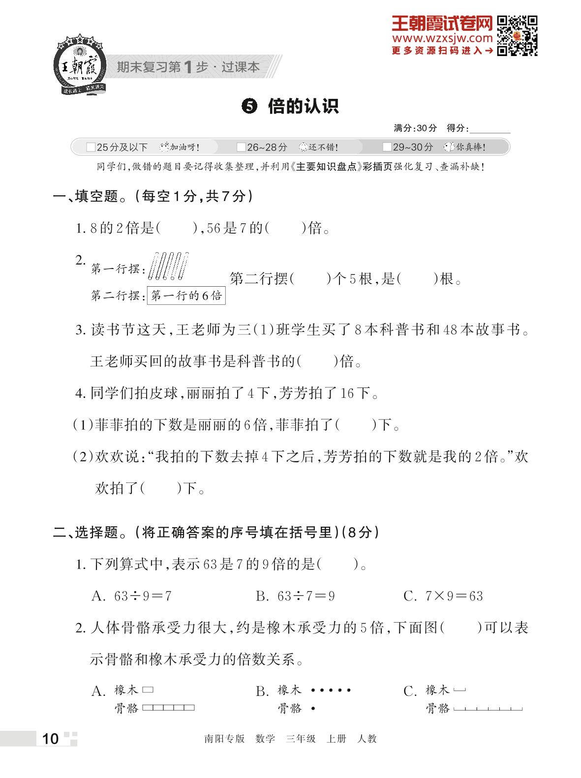 王朝霞期末过课本——5 倍的认识三年级上册数学(人教版)_R221122213121479