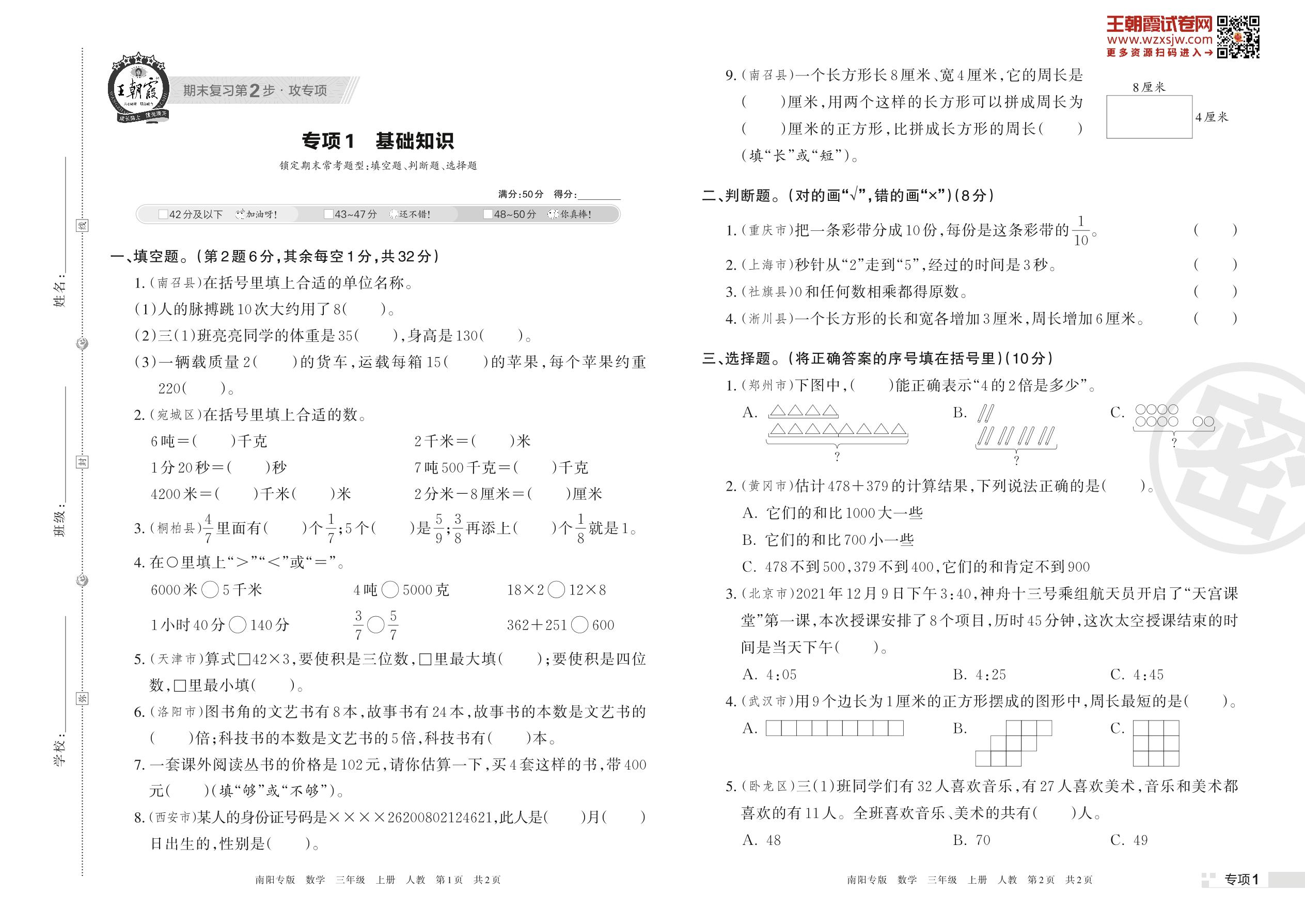 王朝霞期末专项卷——基础知识三年级上册数学(人教版)_R221122213122283【1】