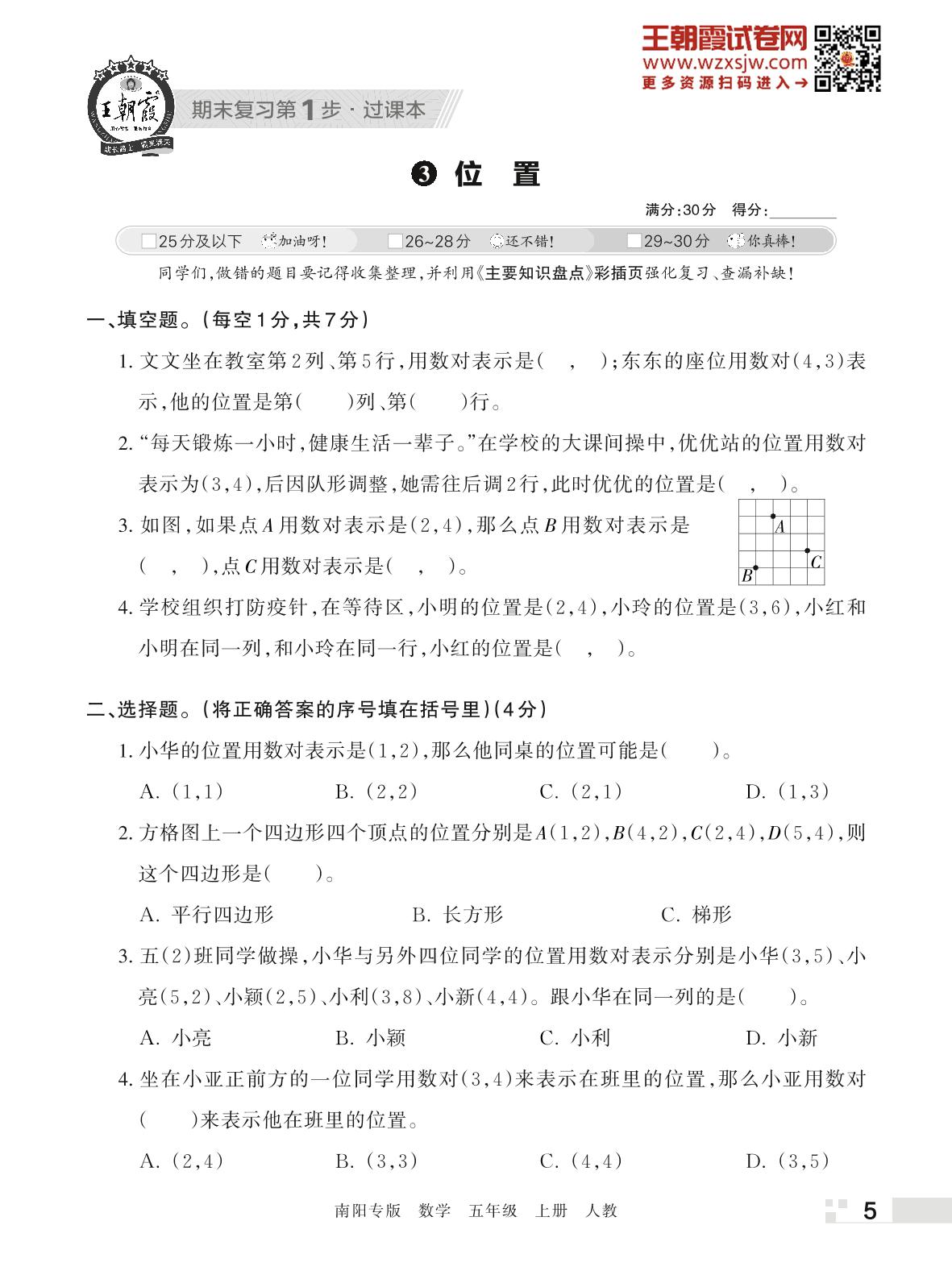 王朝霞期末过课本——3 位置五年级上册数学(人教版)_R221123112448902