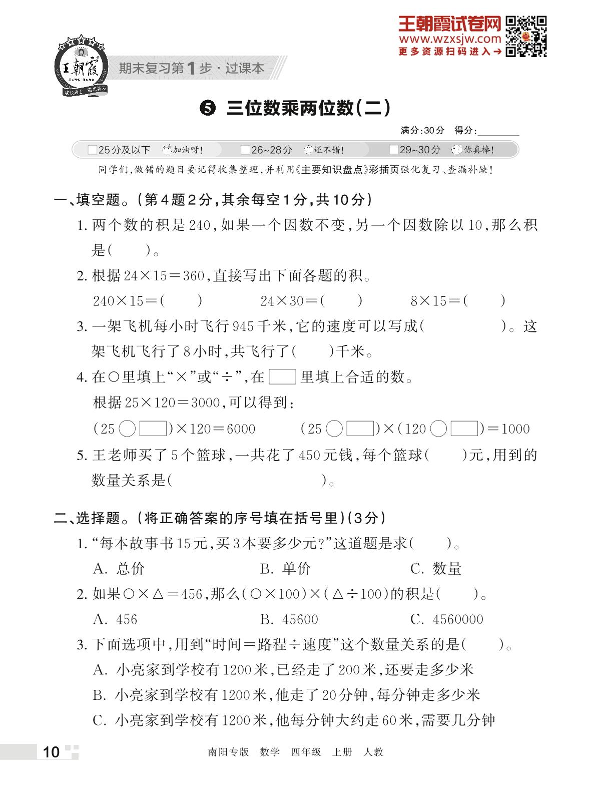 王朝霞期末过课本——5 三位数乘两位数(二)四年级上册数学(人教版)_R221123114902286