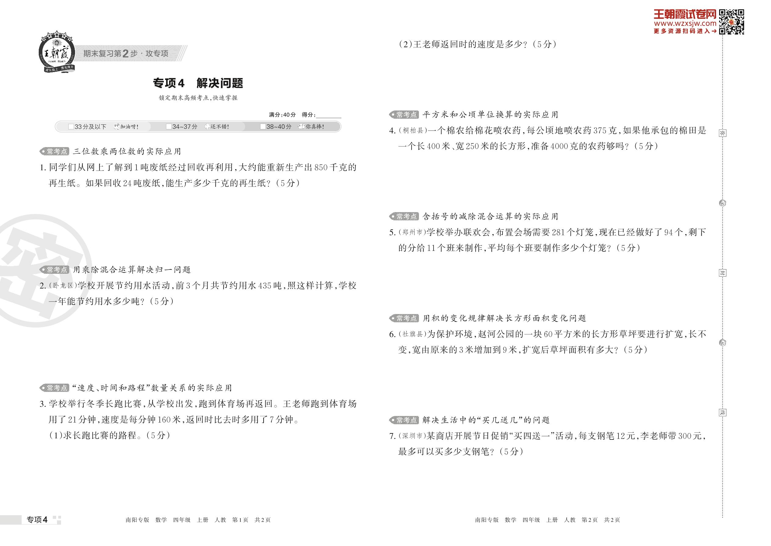 王朝霞期末专项卷——解决问题四年级上册数学(人教版)_R221123114904237【4】