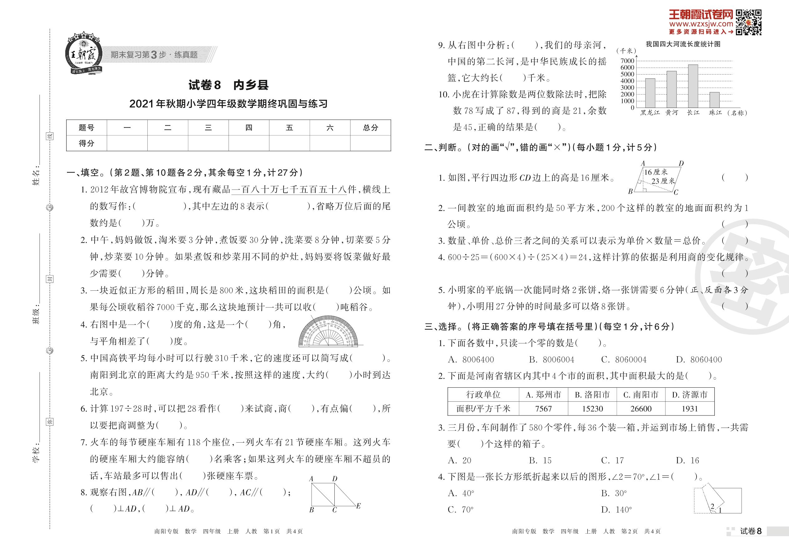 内乡县2021年秋期小学四年级数学期终巩固与练习(人教版)【8】