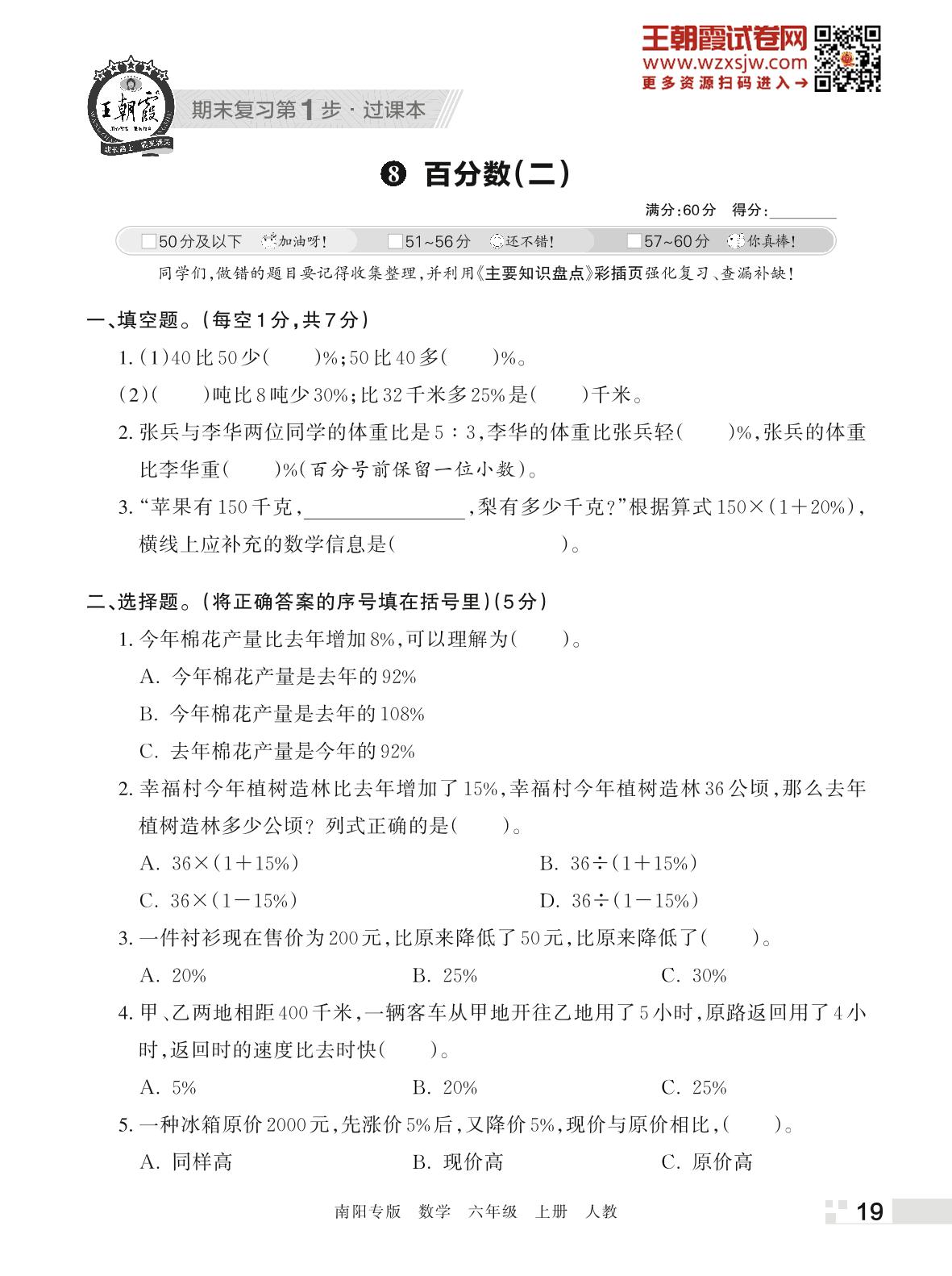 王朝霞期末过课本——8 百分数(二)六年级上册数学(人教版)_R221123140927661