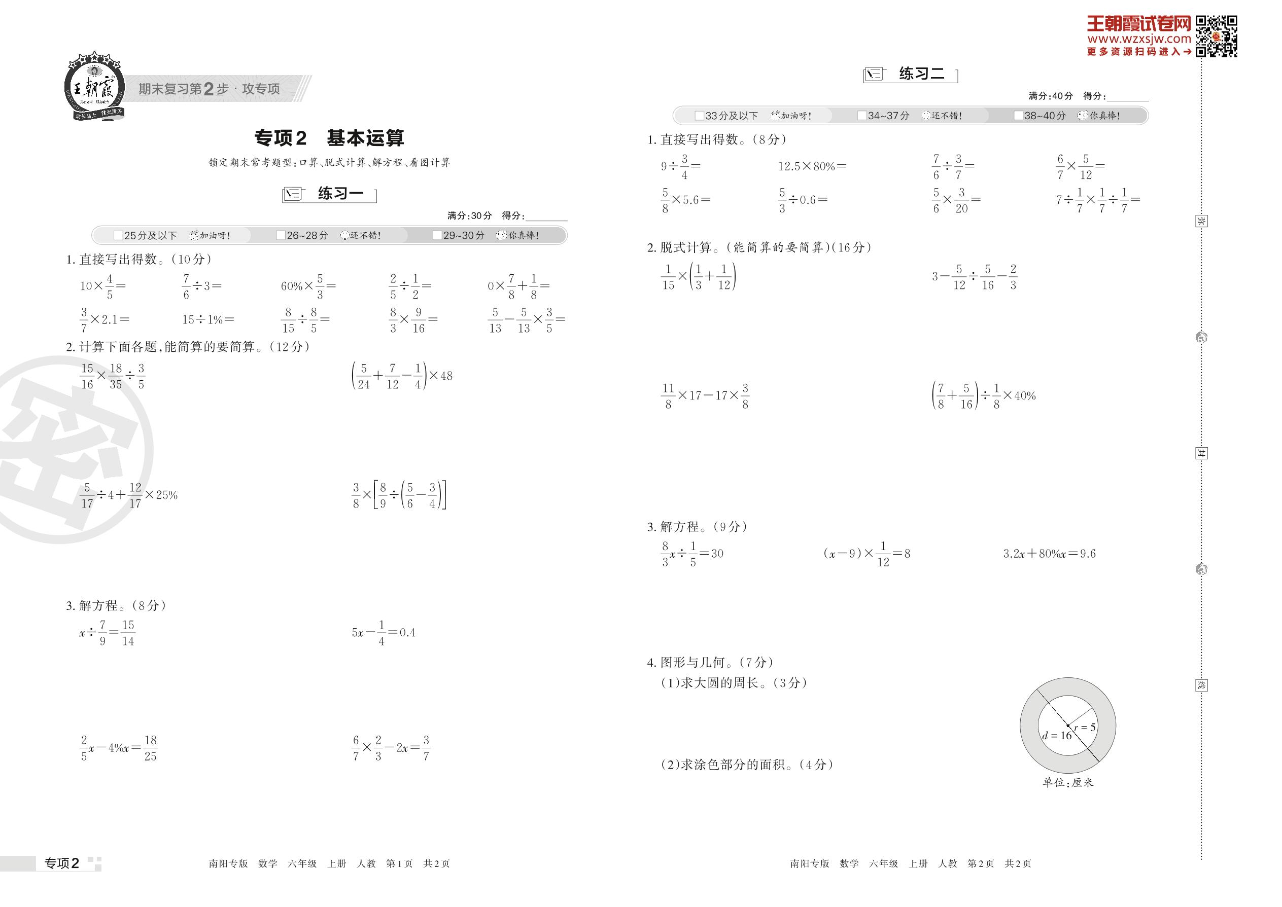 王朝霞期末专项卷——基本运算六年级上册数学(人教版)_R221123140929320【2】
