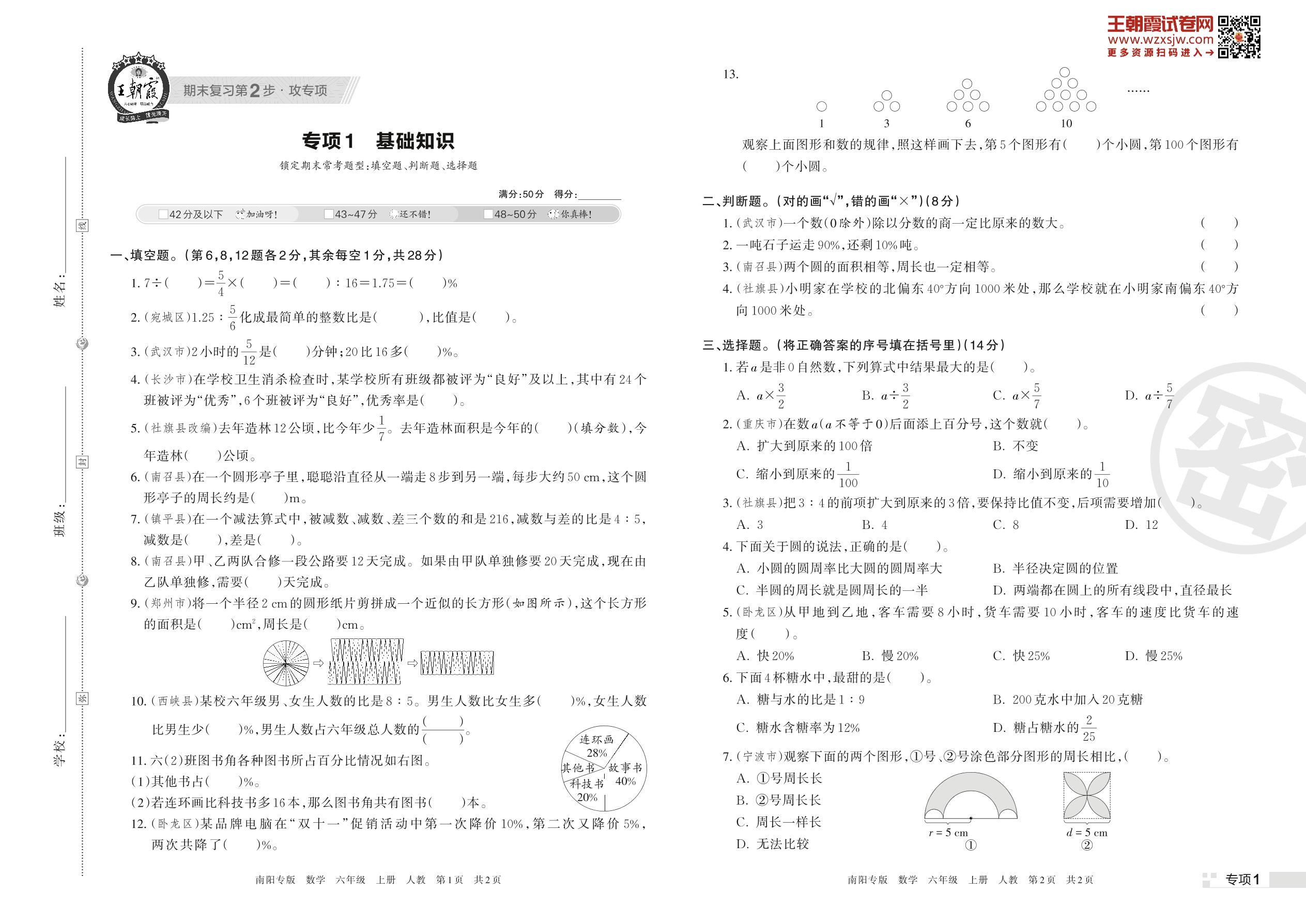 王朝霞期末专项卷——基础知识六年级上册数学(人教版)_R221123140929644【1】