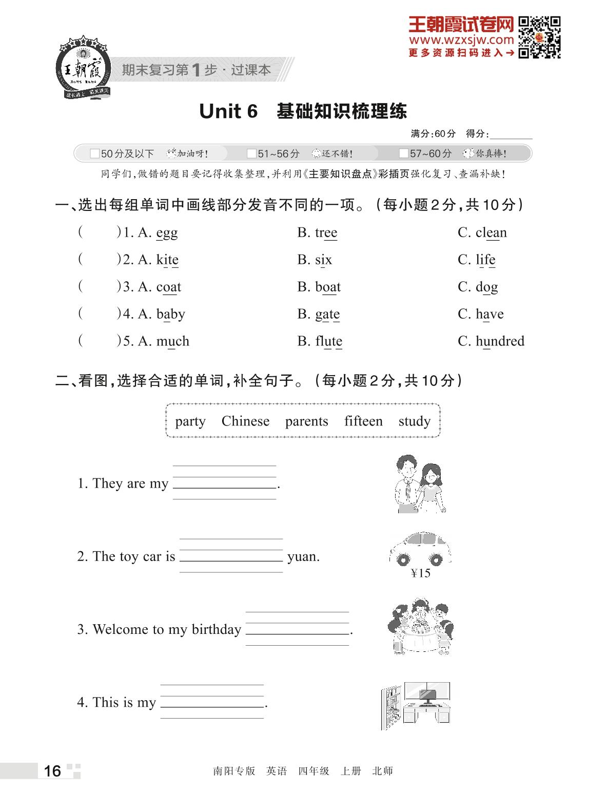 王朝霞期末过课本——Unit 6 基础知识梳理练四年级上册英语(北师版)
