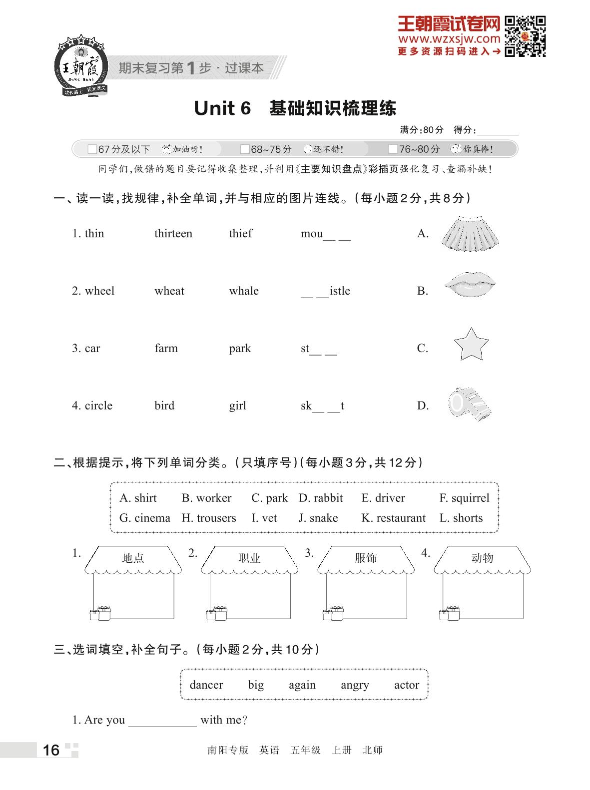 王朝霞期末过课本——Unit 6 基础知识梳理练五年级上册英语(北师版)